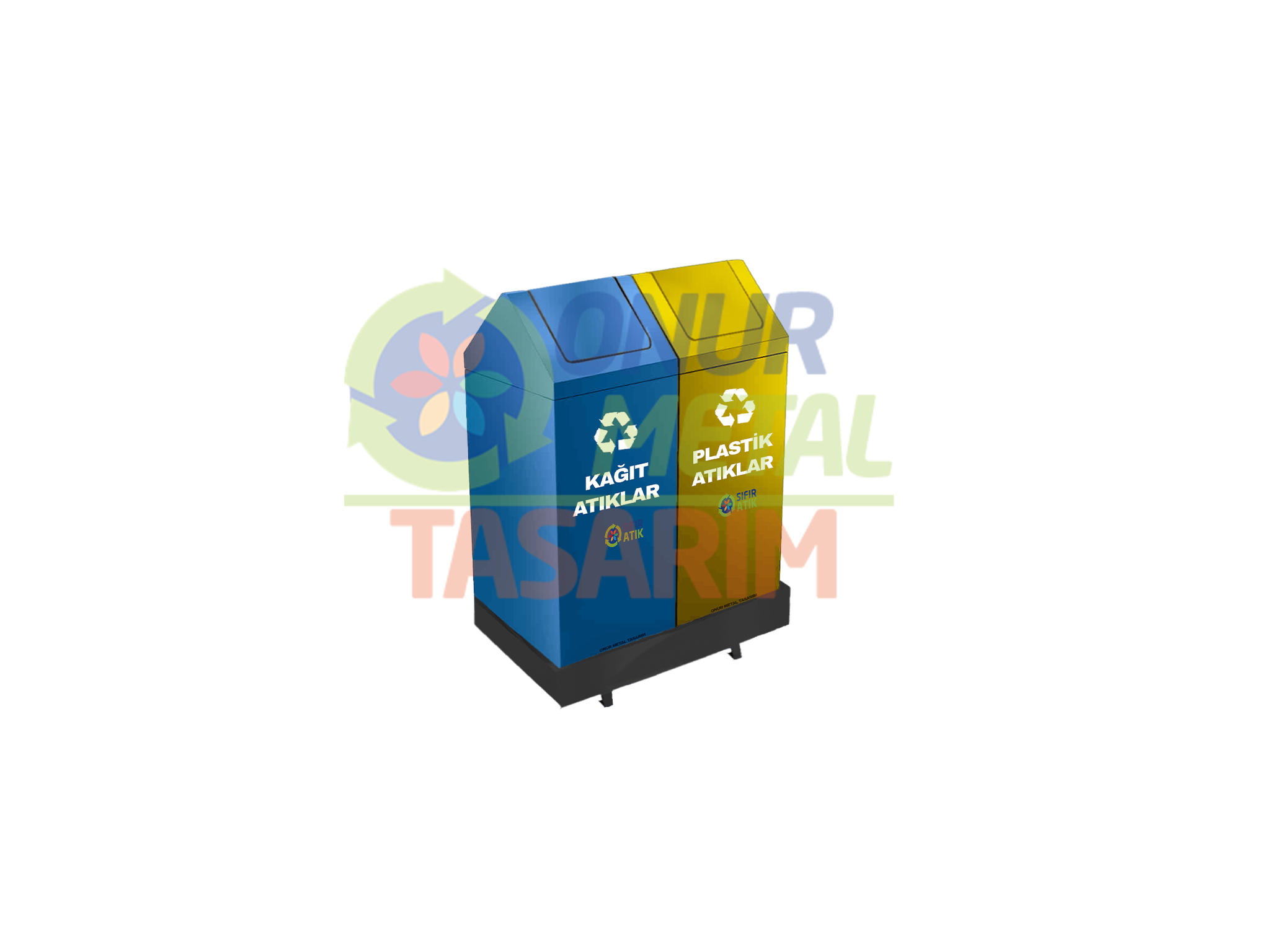 OMT-417 25×25 2’li Metal Sallanır Kapaklı Sac Bazalı Çöp Kutusu