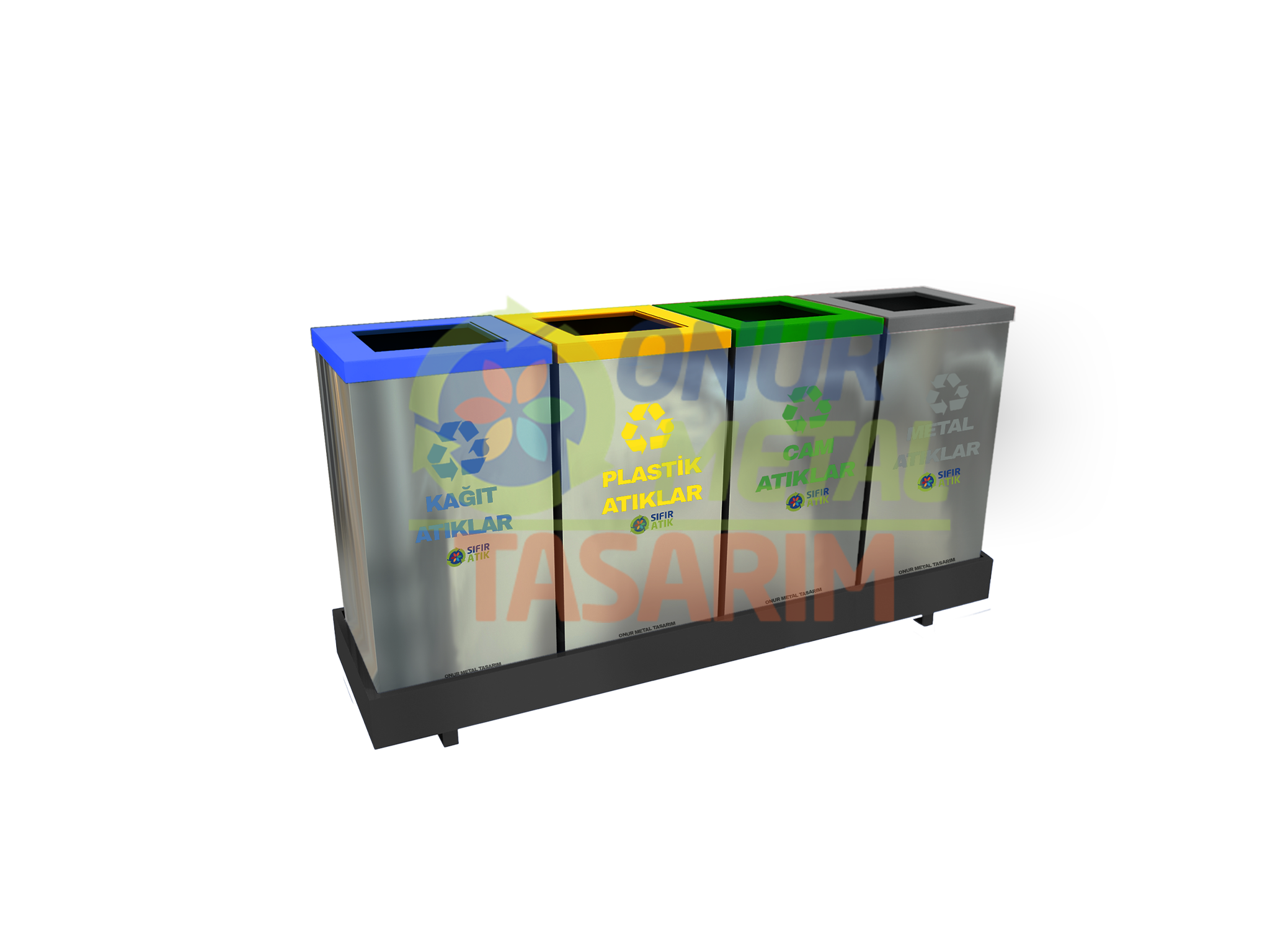 OMT-516 25×25 4’lü Paslanmaz Sac Bazalı Düz Kapaklı Çöp Kutusu