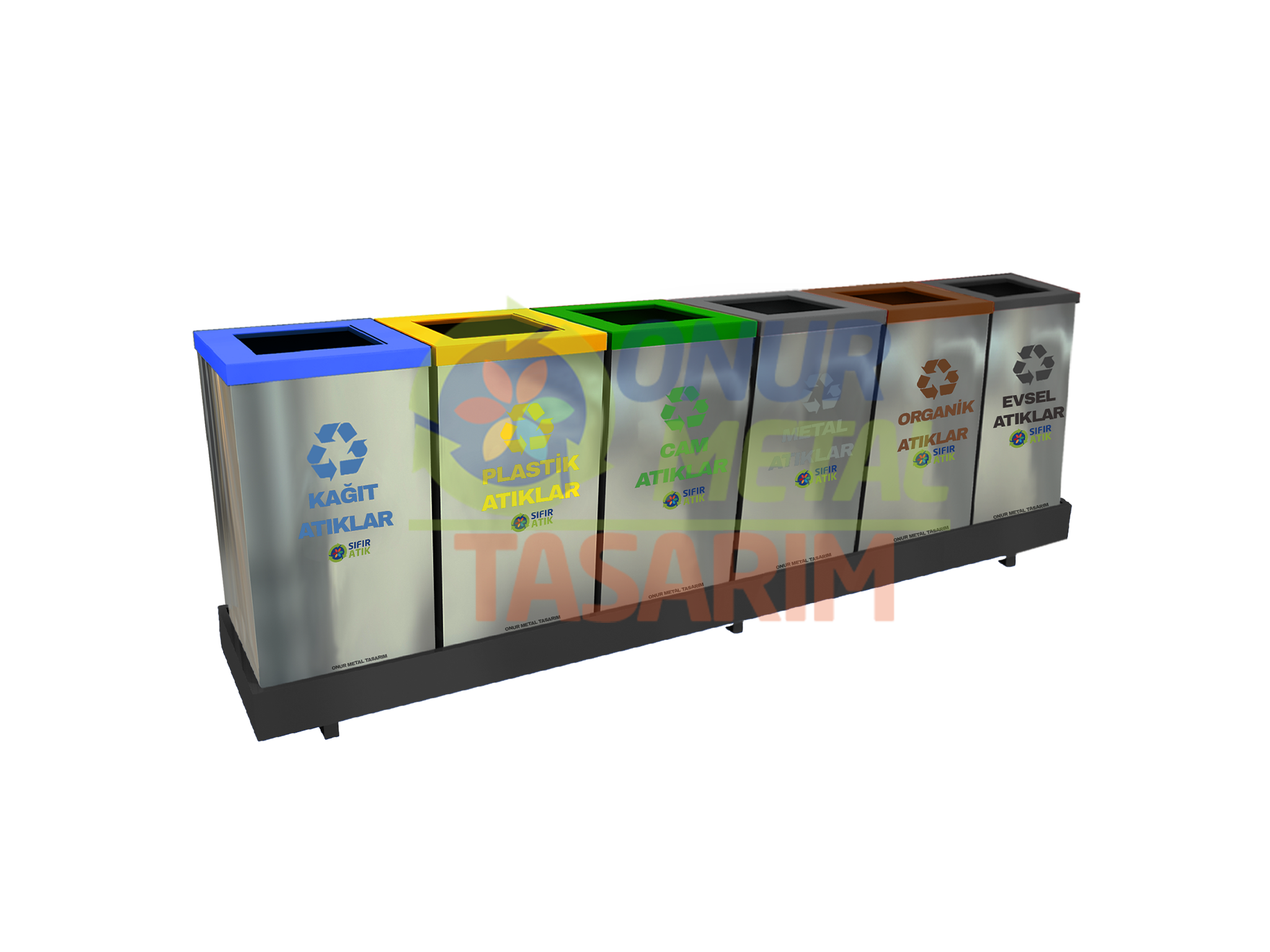OMT-518 25×25 6’lı Paslanmaz Sac Bazalı Düz Kapaklı Çöp Kutusu