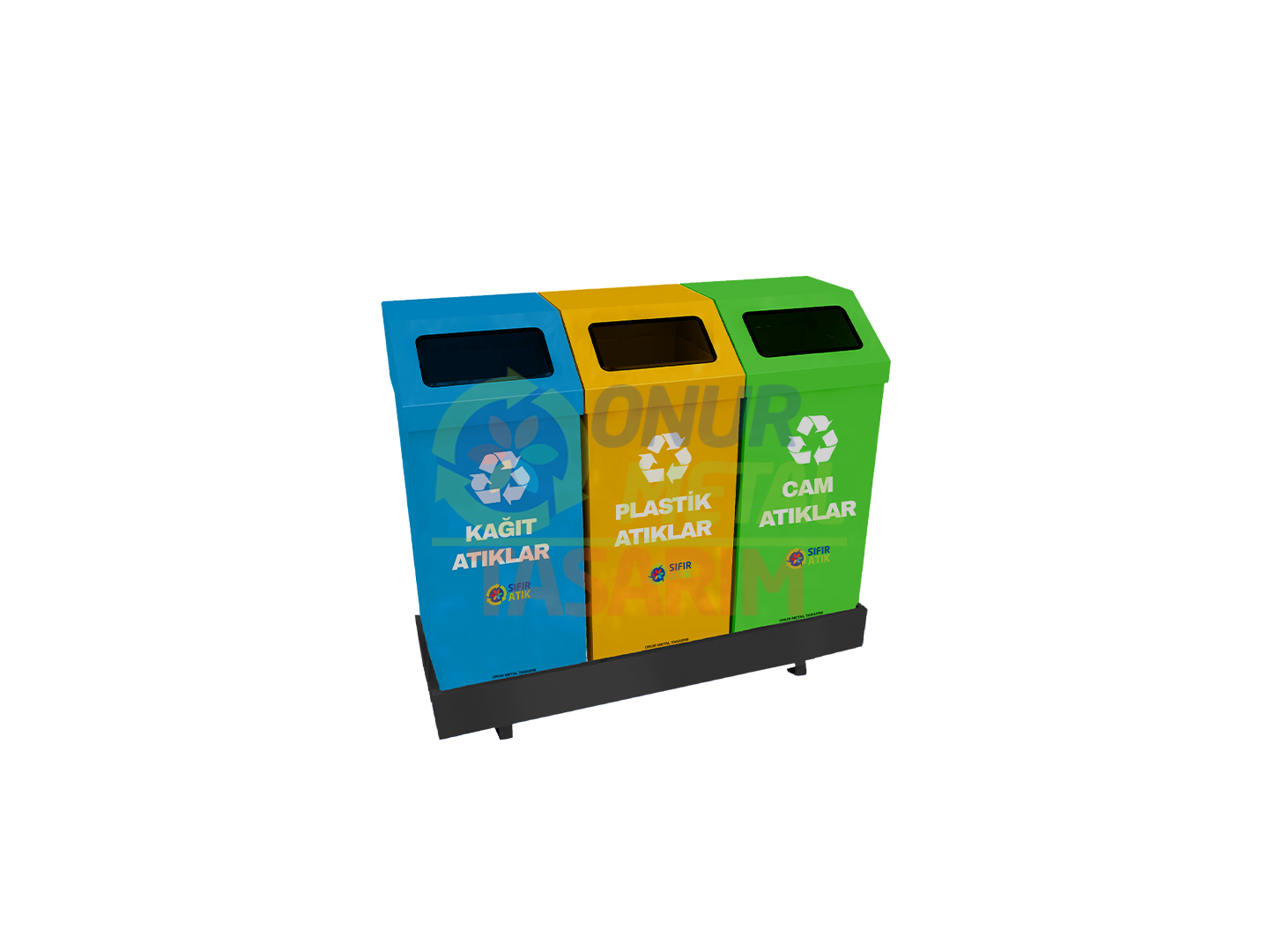 OMT-429 25×30 3’lü Metal Sac Bazalı Pencere Kapaklı Çöp Kutusu