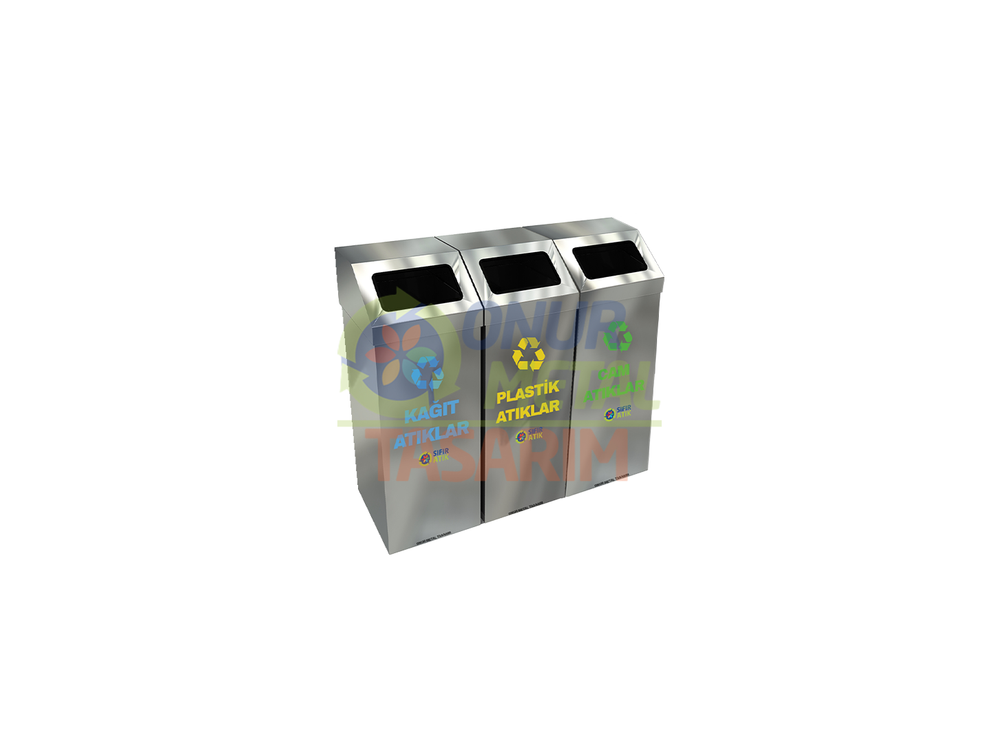 OMT-532 25×30 3’lü Paslanmaz Pencere Kapaklı Çöp Kutusu