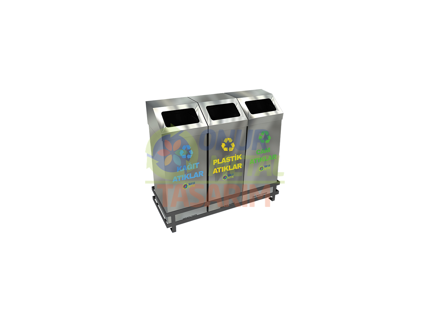 OMT-542 25×30 3’lü Paslanmaz Pencere Kapaklı Silme ( Profil ) Bazalı Çöp Kutusu