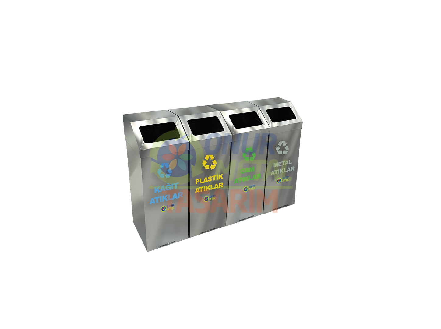 OMT-533 25×30 4’lü Paslanmaz Pencere Kapaklı Çöp Kutusu