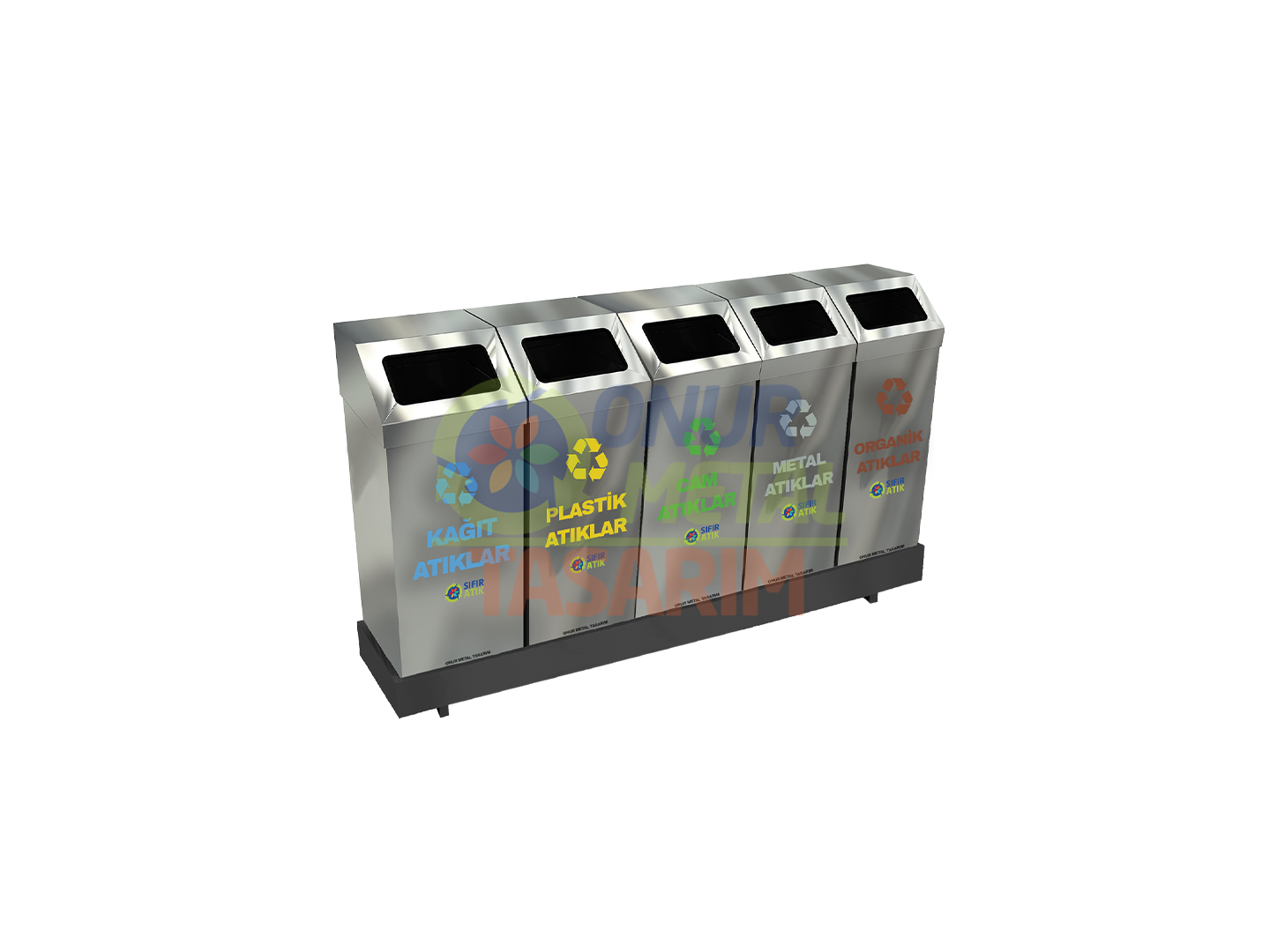 OMT-539 25×30 5’li Paslanmaz Pencere Kapaklı Sac Bazalı Çöp Kutusu