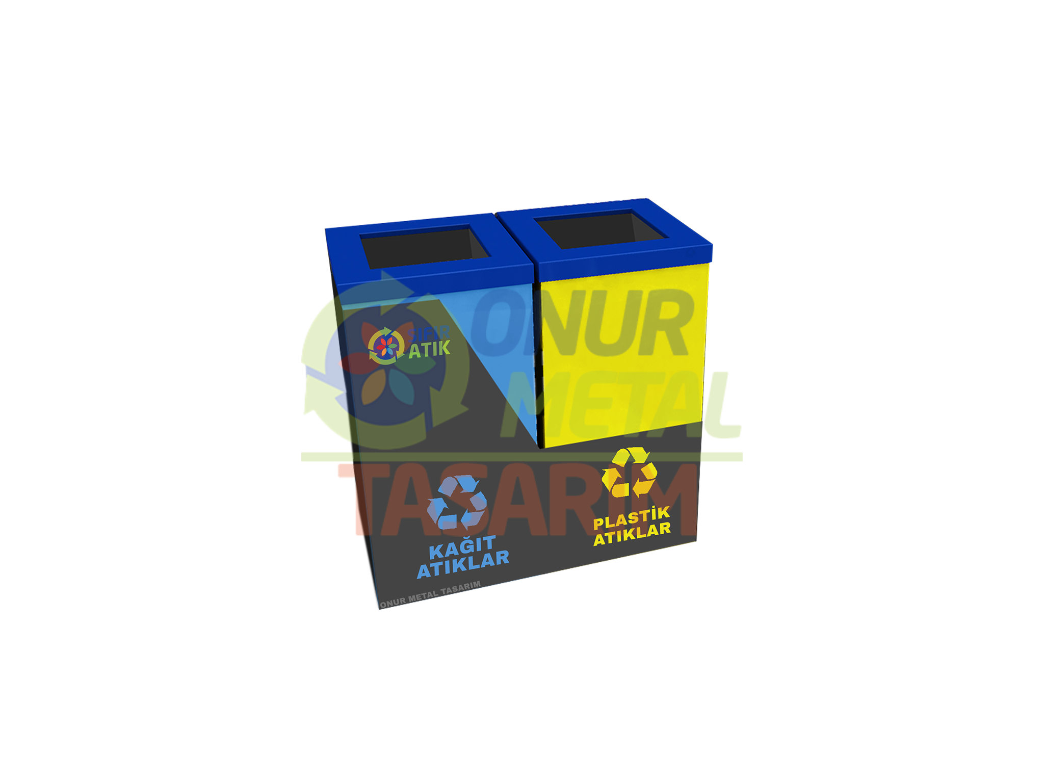 OMT-1100 2’li Metal Zaviyeli Sıfır Atık Çöp Kutusu