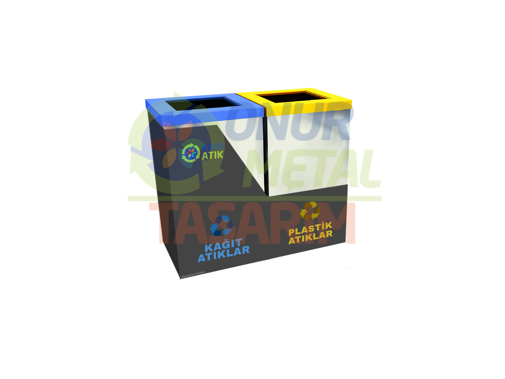 OMT-1100 2’li Metal Zaviyeli Sıfır Atık Çöp Kutusu