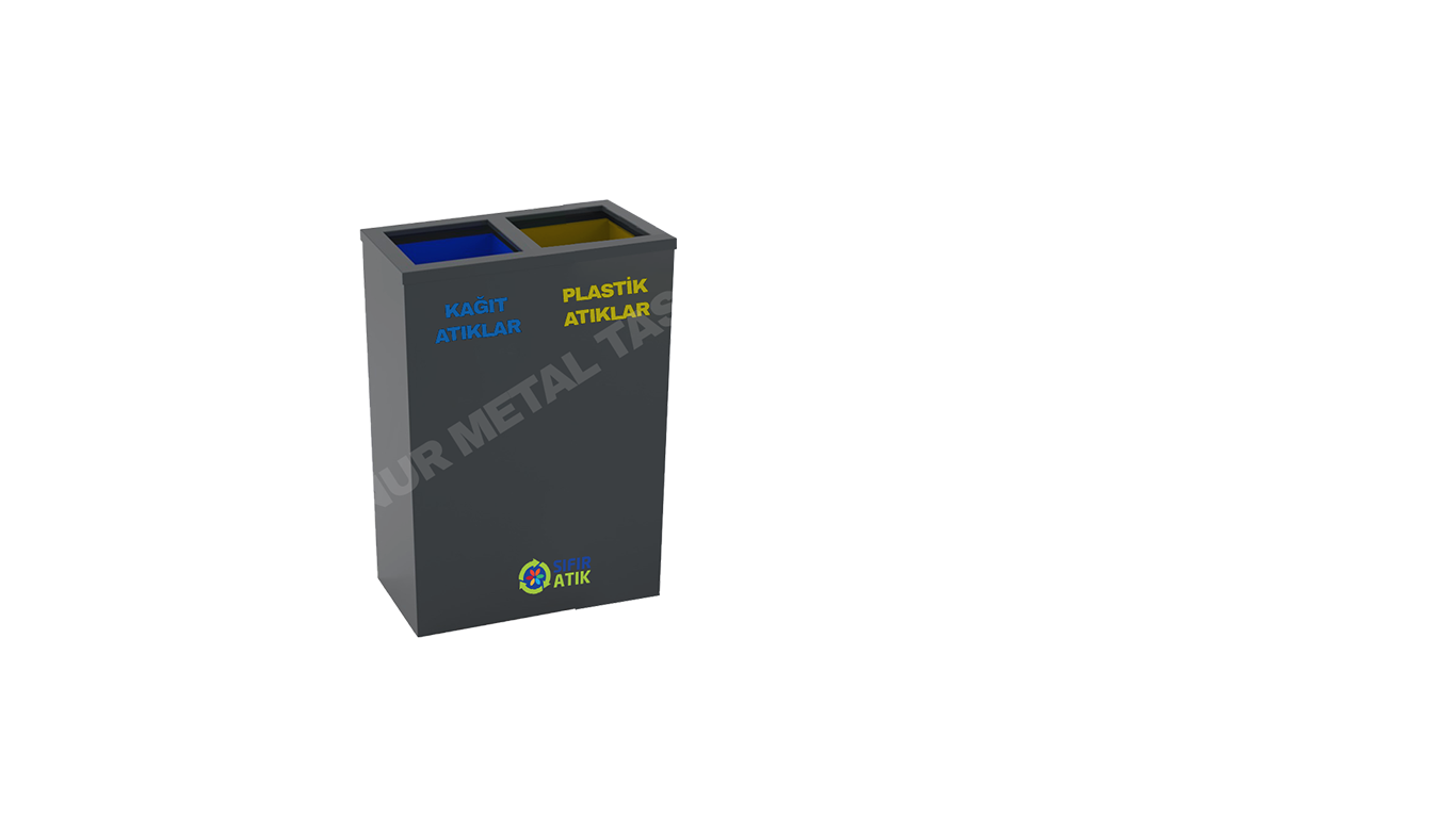OMT-1100 2’li Metal Zaviyeli Sıfır Atık Çöp Kutusu