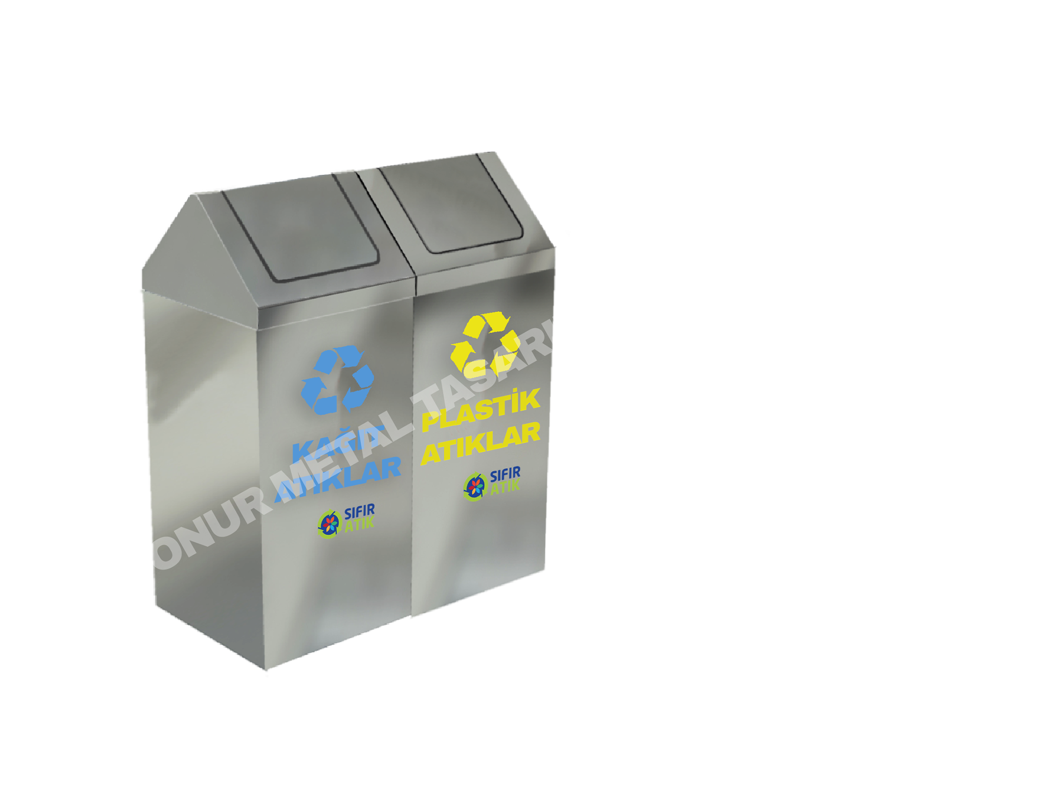 OMT-574 30X30 2’li Paslanmaz Sallanır Kapaklı Çöp Kutusu
