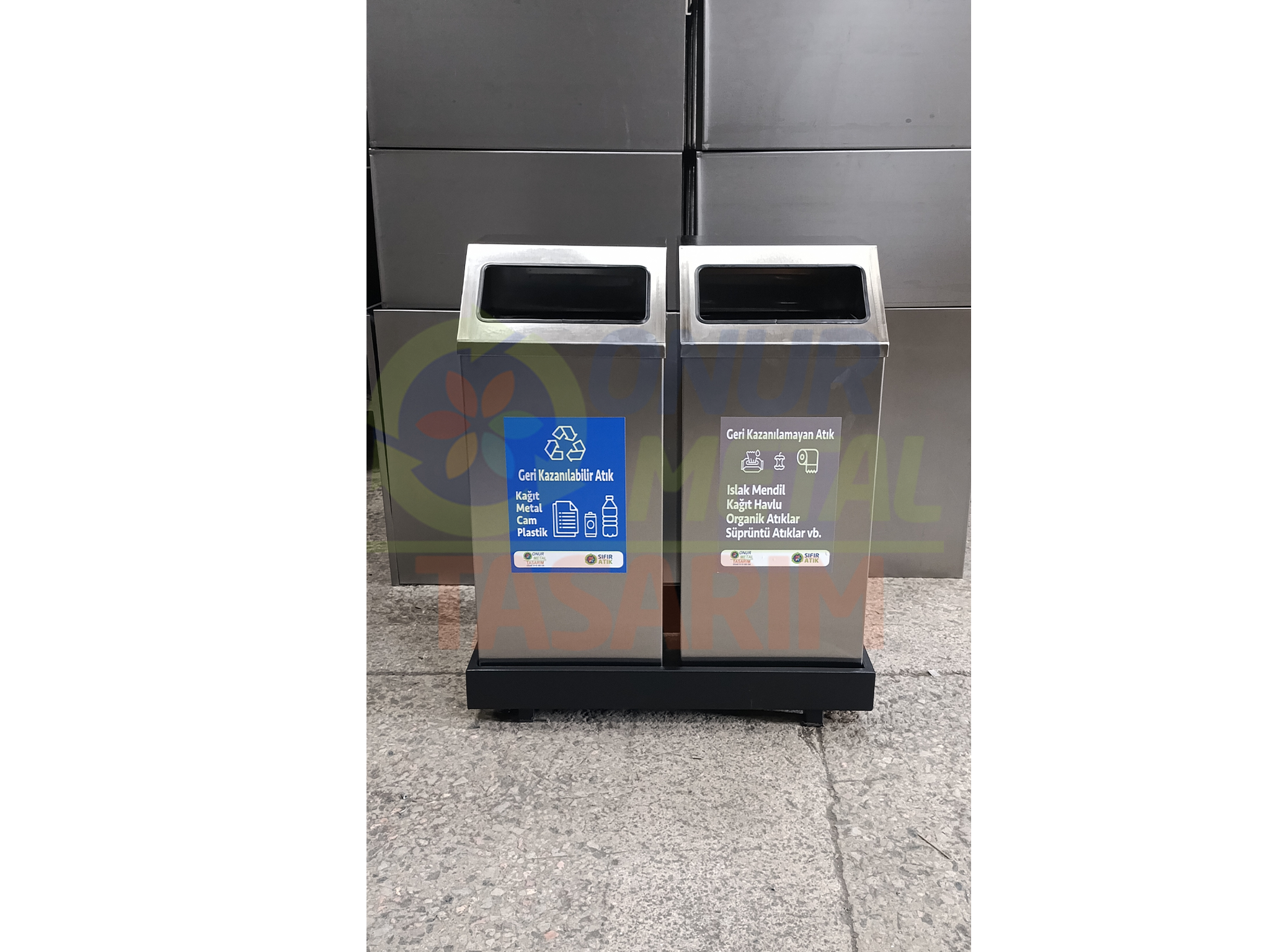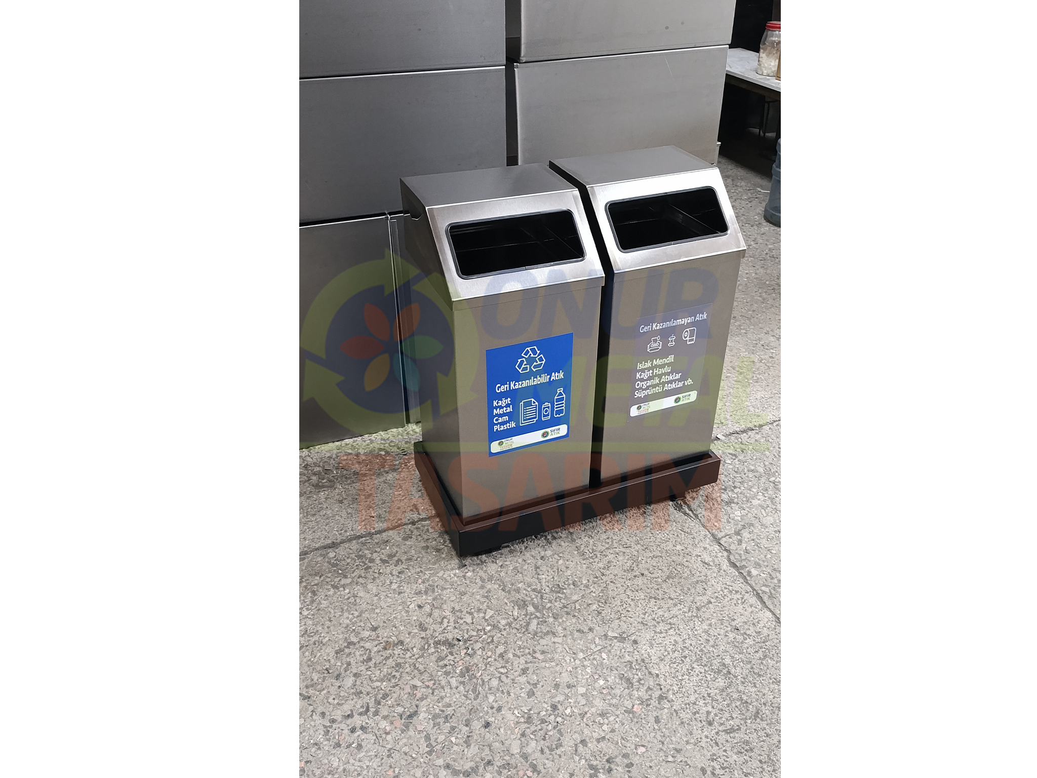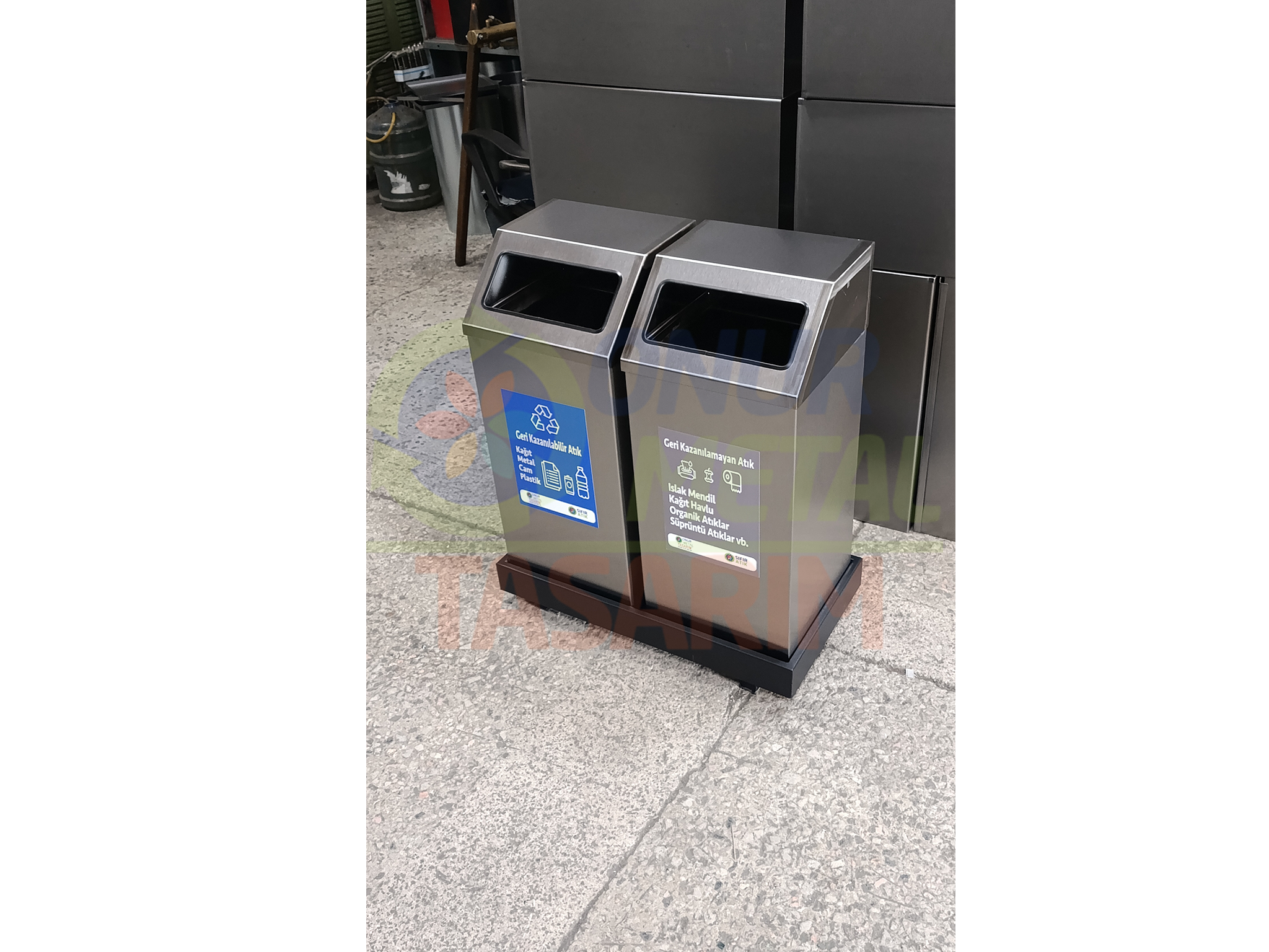 OMT-563 30×30 2’li Paslanmaz Sac Bazalı Çöp Kutusu