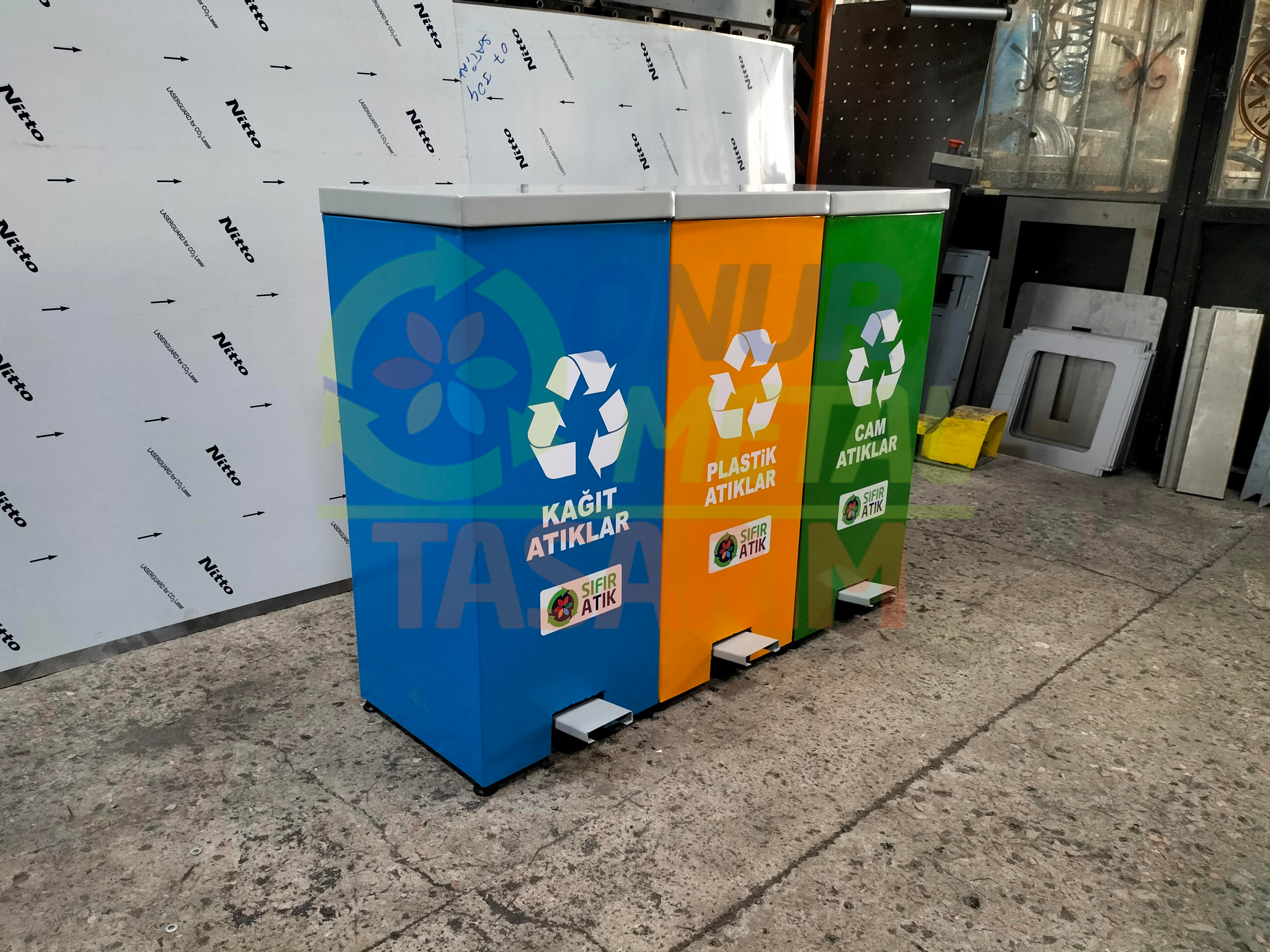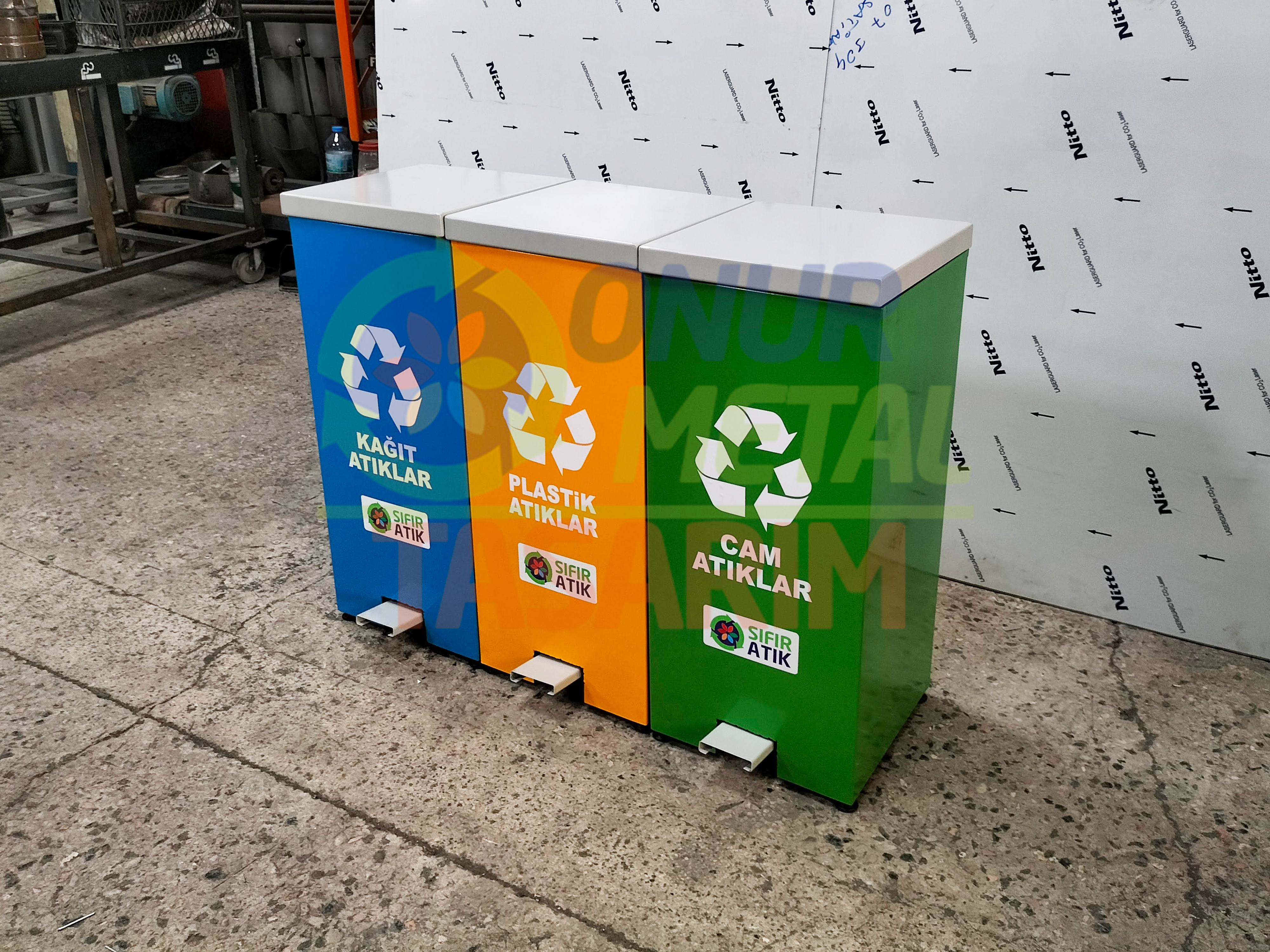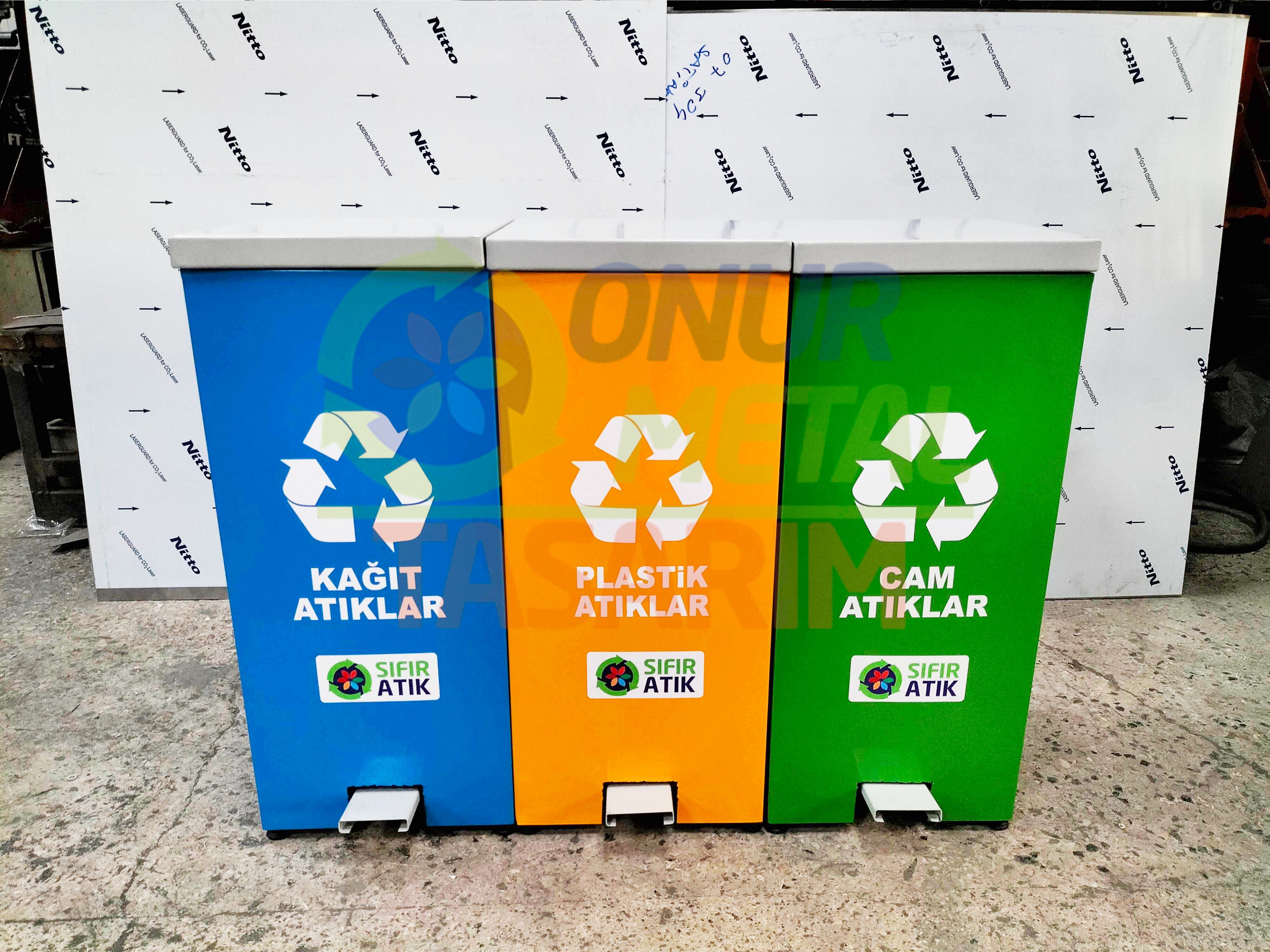 OMT-1202 30X30 3’lü Metal Pedallı Sıfır Atık Çöp Kutusu