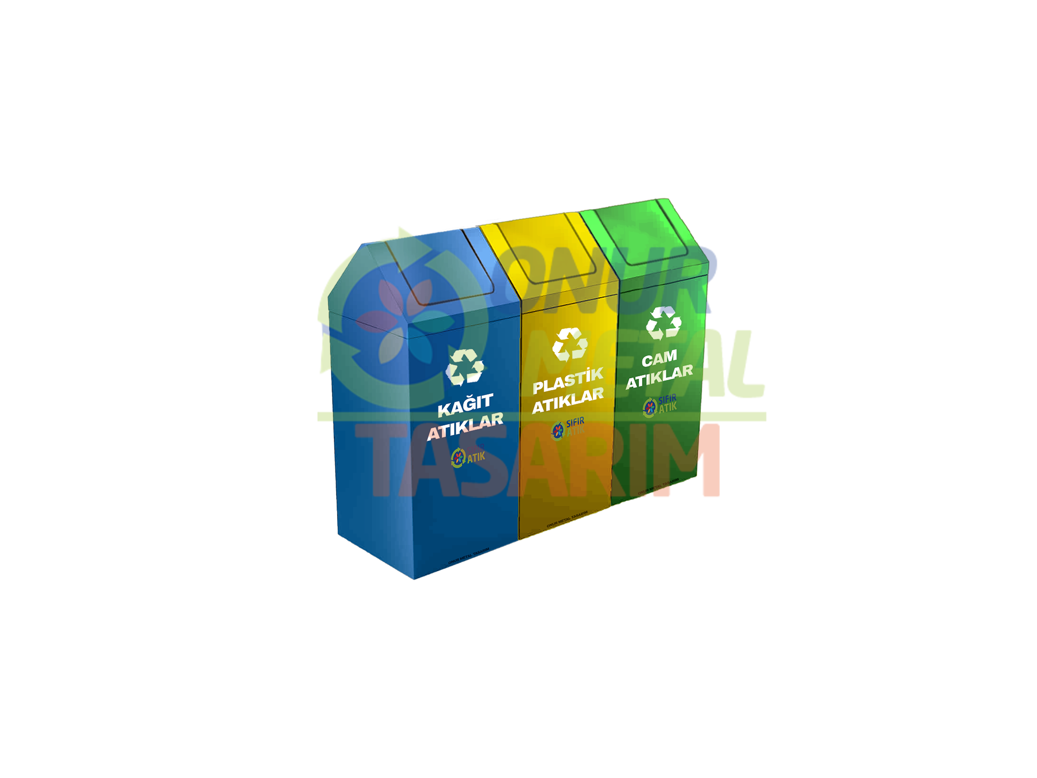 OMT-467 30×30 3’lü Metal Sallanır Kapaklı Çöp Kutusu