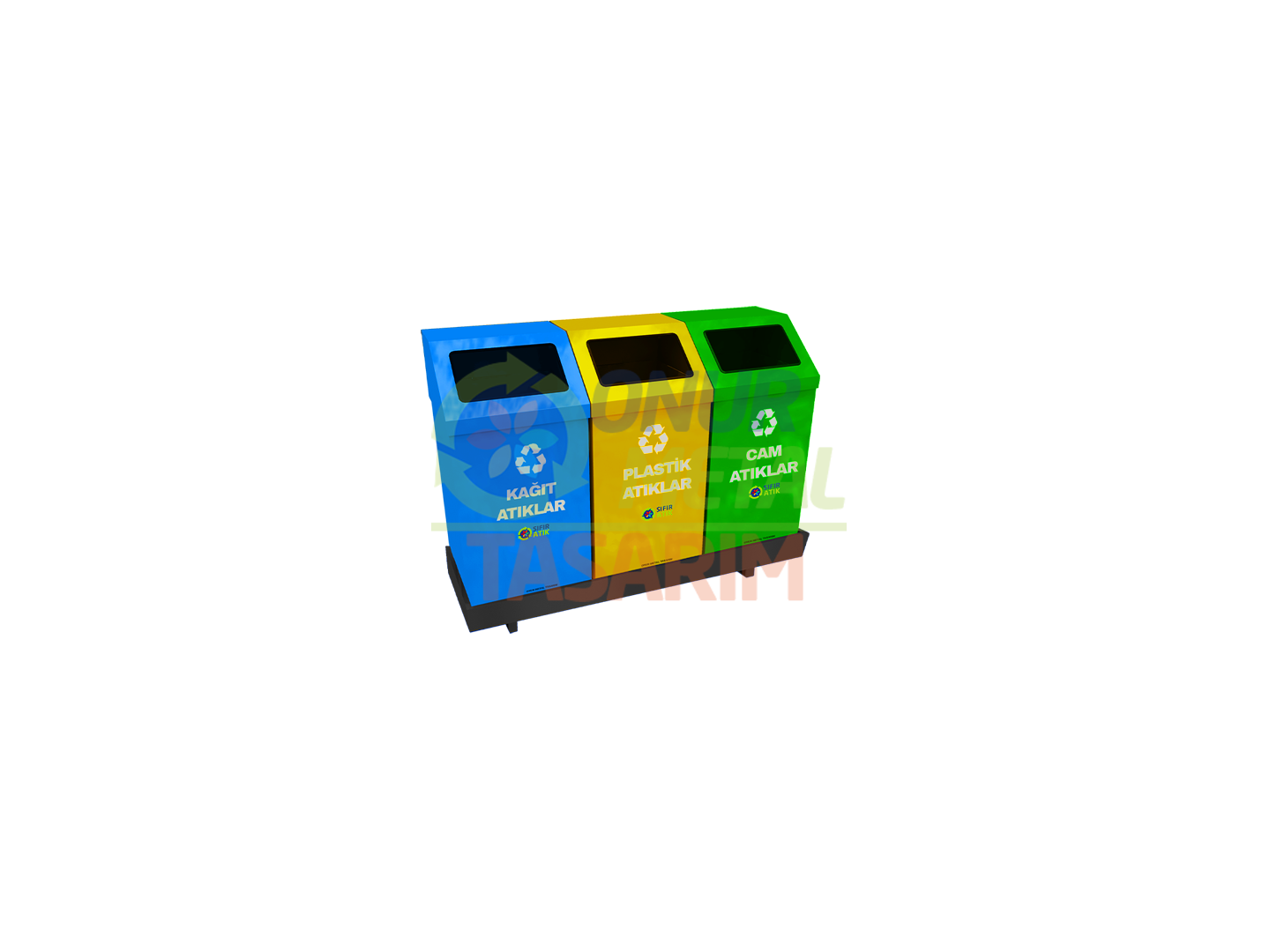 OMT-456 30×30 3’lü Metal Pencere Kapaklı Sac Bazalı Çöp Kutusu