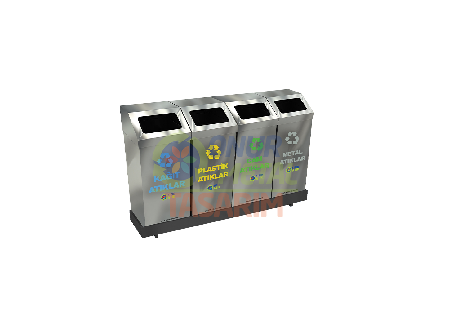 OMT-565 30×30 4’lü Paslanmaz Sac Bazalı Çöp Kutusu