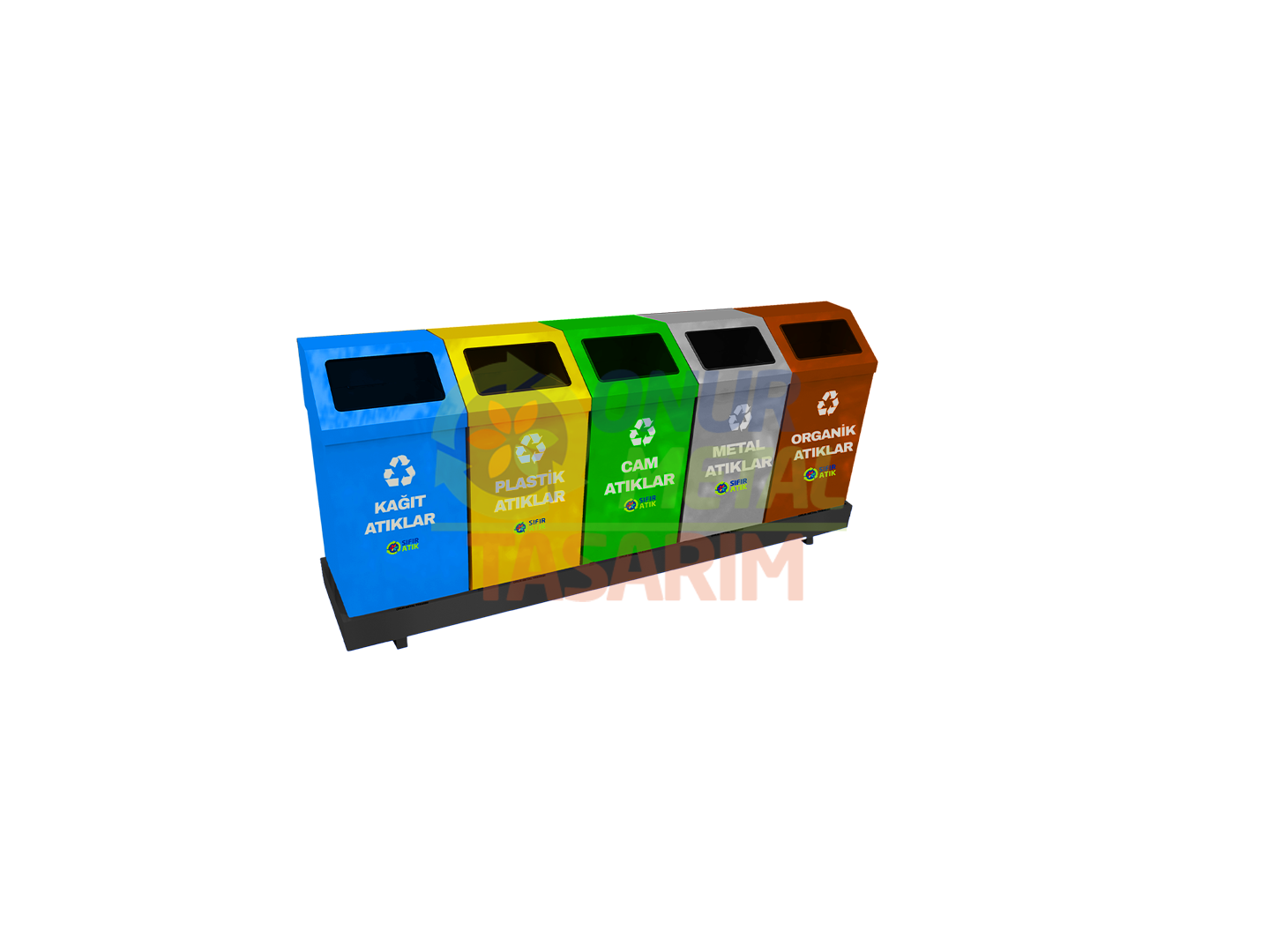 OMT-458 30×30 5’li Metal Pencere Kapaklı Sac Bazalı Çöp Kutusu