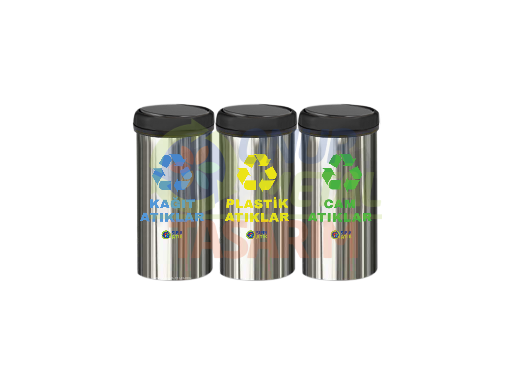 OMT-869 3’lü Döner Kapaklı Paslanmaz Sıfır Atık Çöp Kovası