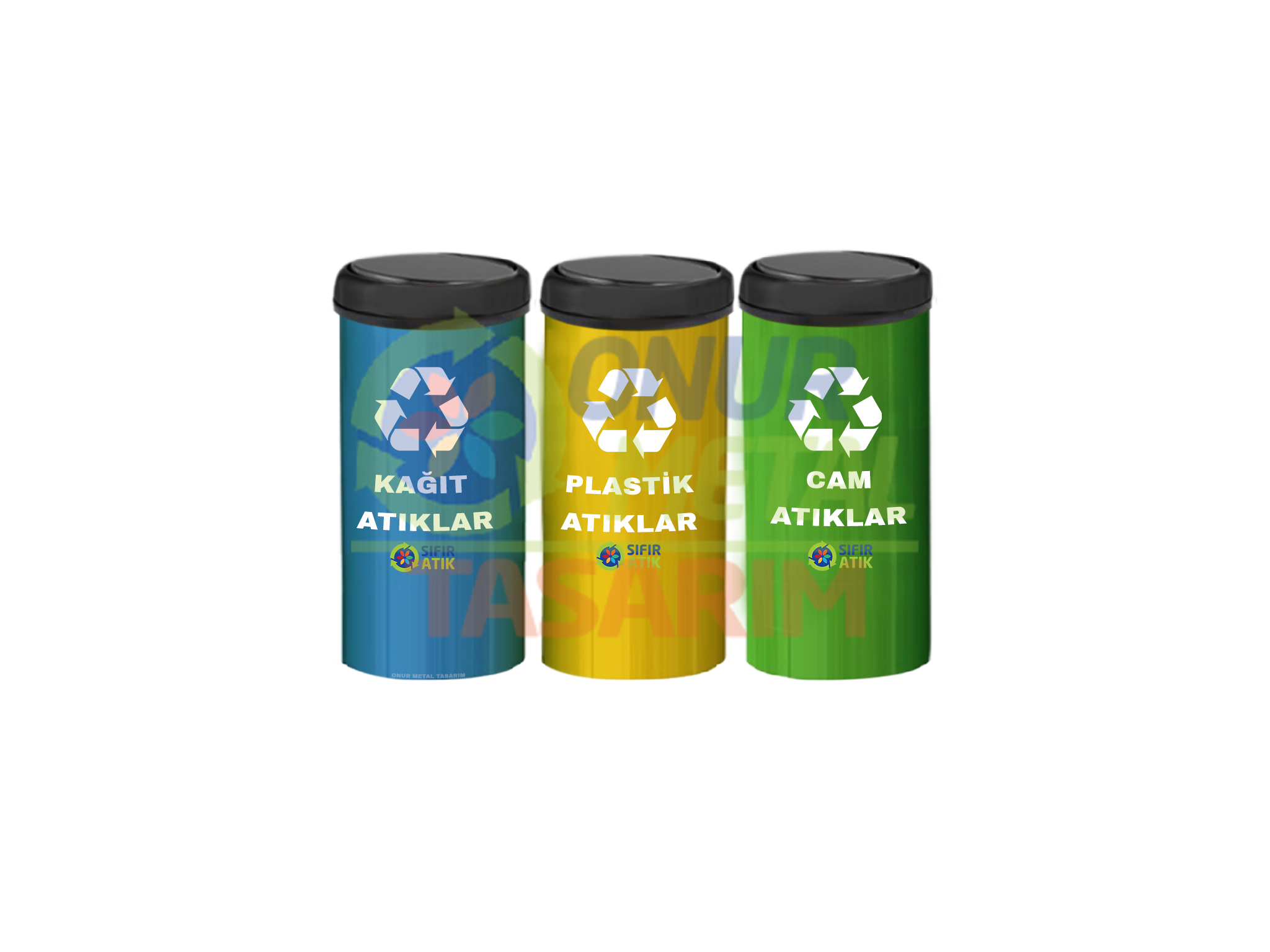 OMT-880 3’lü Döner Kapaklı Sıfır Atık Çöp Kovası