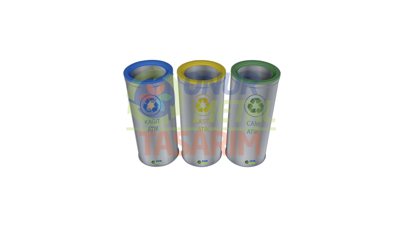 OMT-853 3’lü Paslanmaz Geri Dönüşüm Çöp Kovası