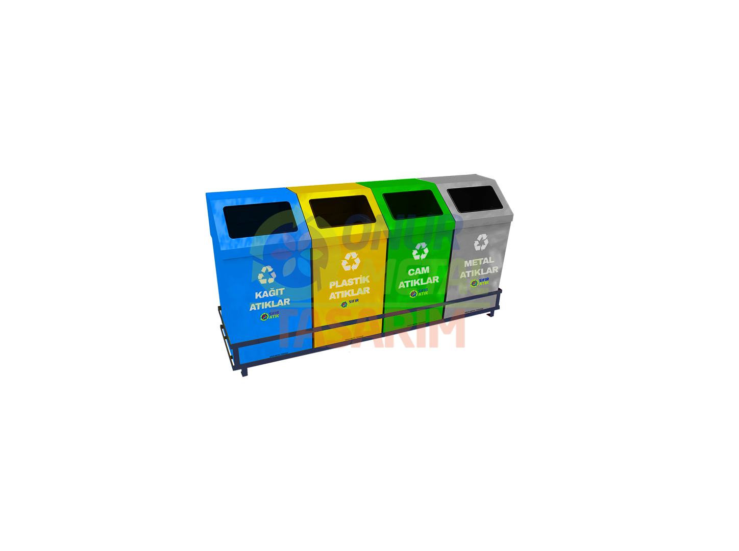 OMT-489 40×40 4’lü Metal Slim (Profil) Bazalı Pencere Kapaklı Çöp Kutusu