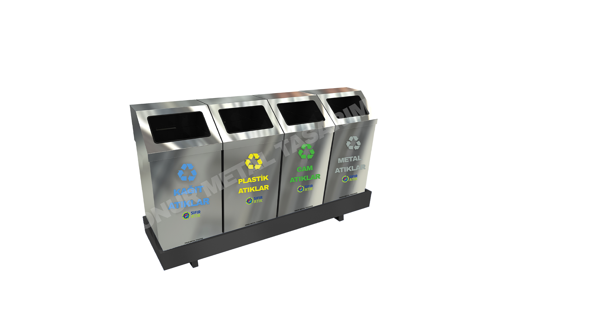 OMT-592 40×40 4’lü Paslanmaz Sac Bazalı Pencere Kapaklı Çöp Kutusu | 384L Büyük Dayanıklı Paslanmaz Çelik