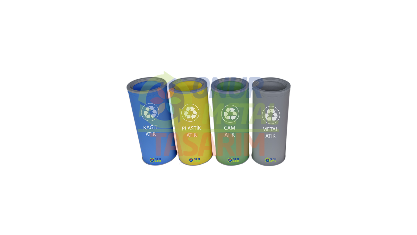 OMT-804 4’lü Metal Geri Dönüşüm Çöp Kovası