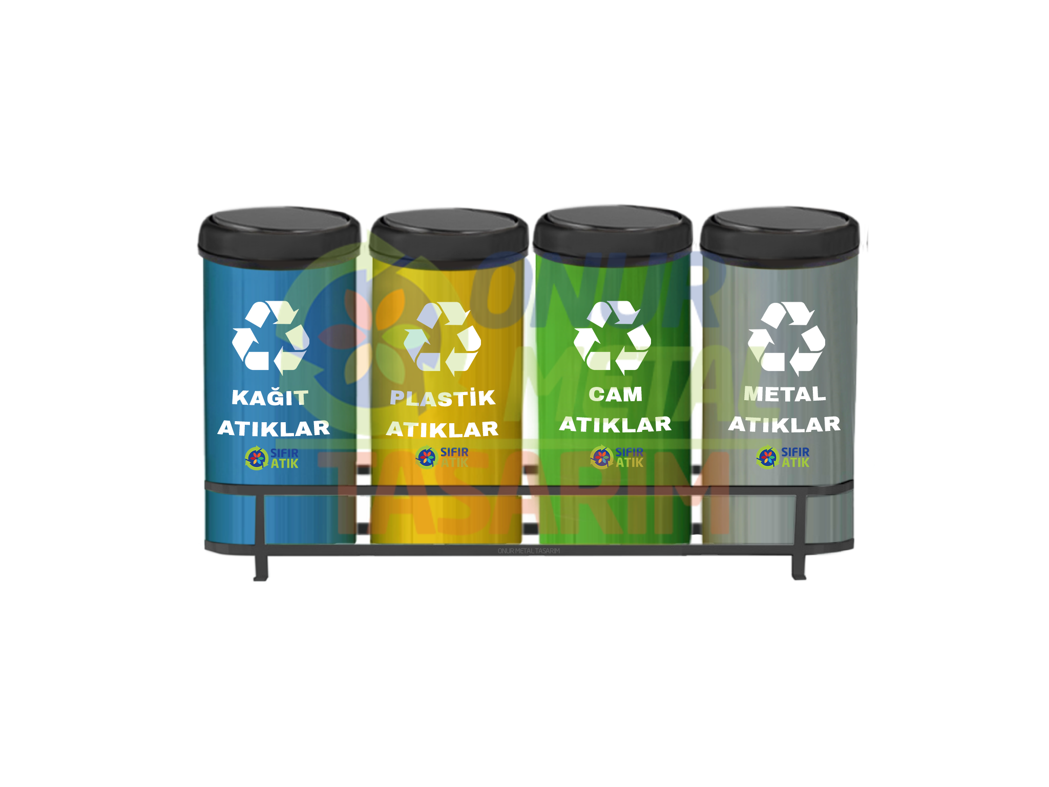 OMT-886 4’lü Döner Kapaklı Bazalı Sıfır Atık Çöp Kovası
