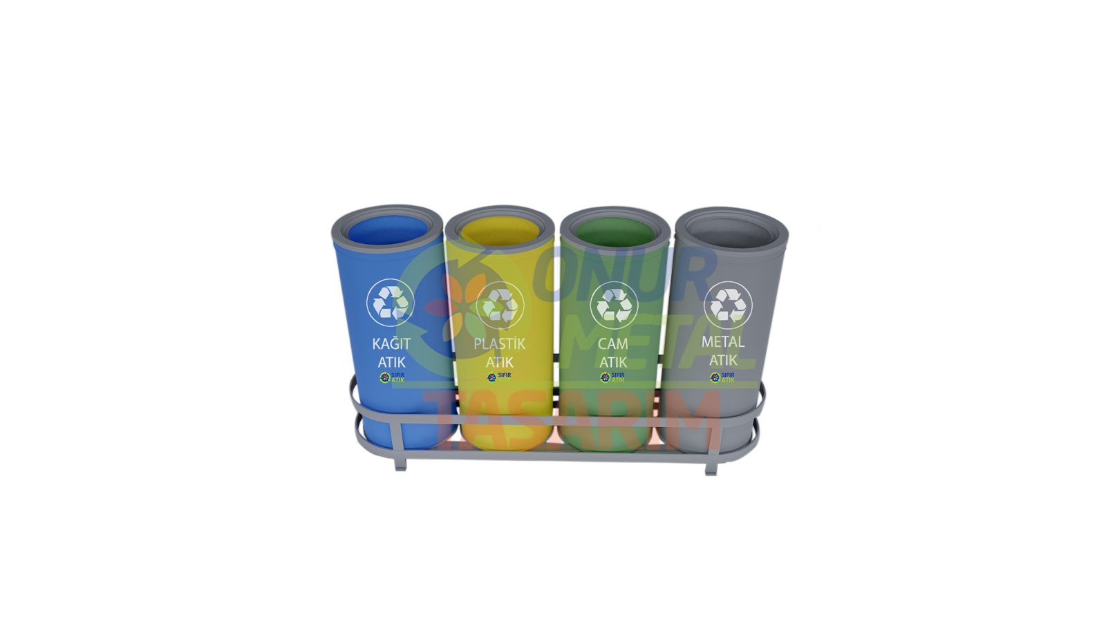 OMT-809 4’lü Metal Silme ( Profil ) Bazalı Geri Dönüşüm Çöp Kovası