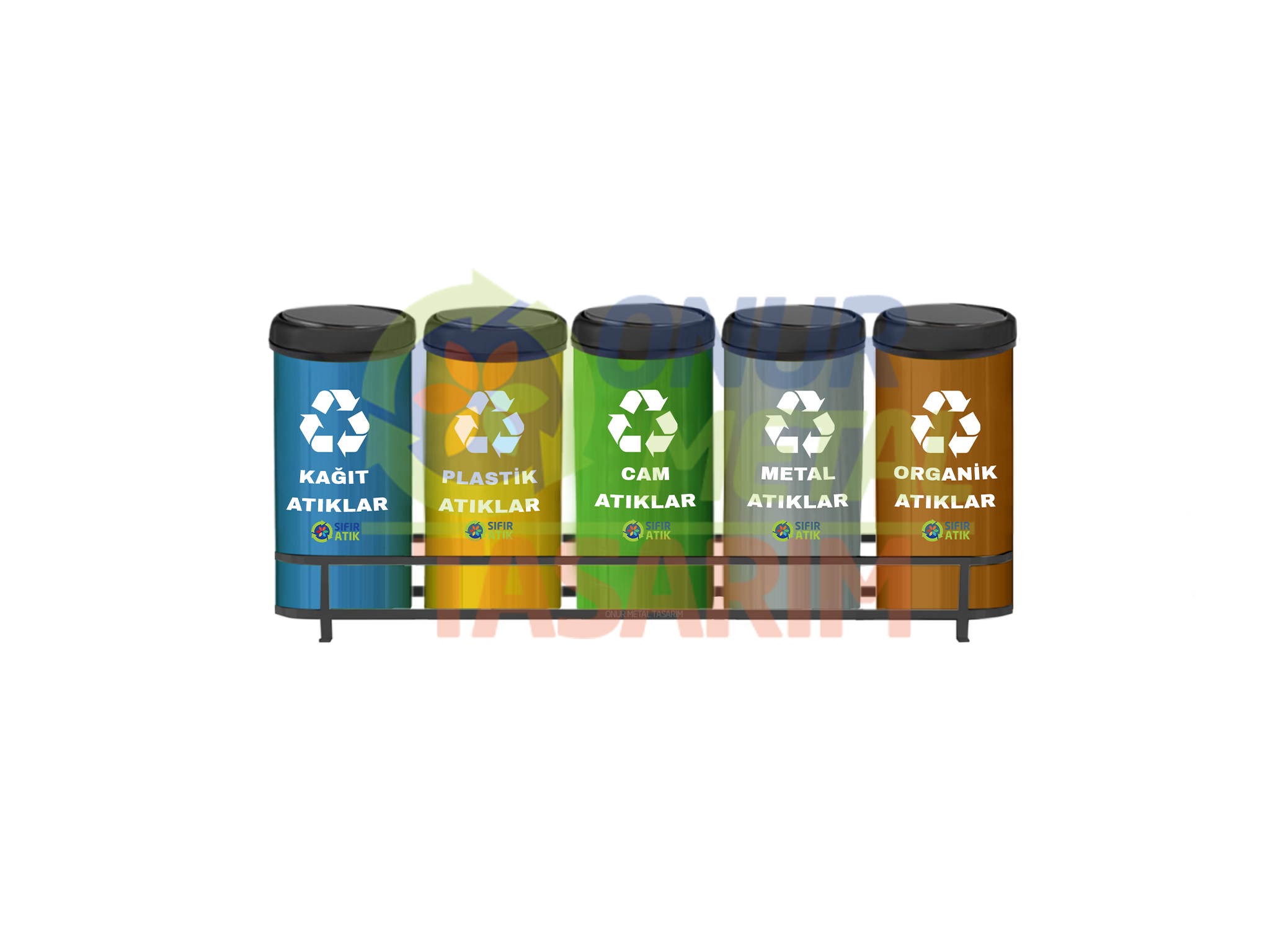 OMT-887 5’li Döner Kapaklı Bazalı Sıfır Atık Çöp Kovası