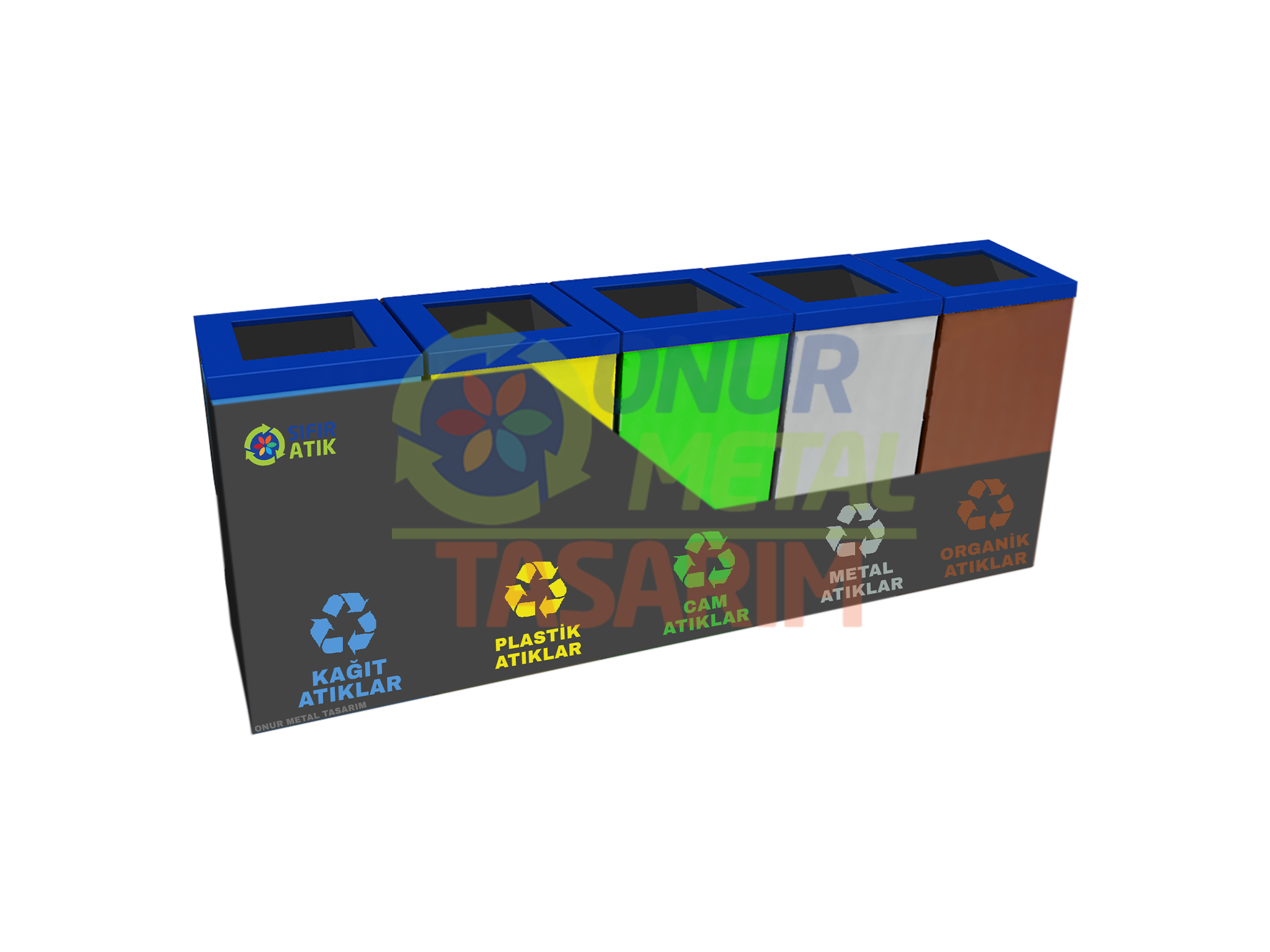 OMT-1104 5’li Metal Zaviyeli Sıfır Atık Çöp Kutusu