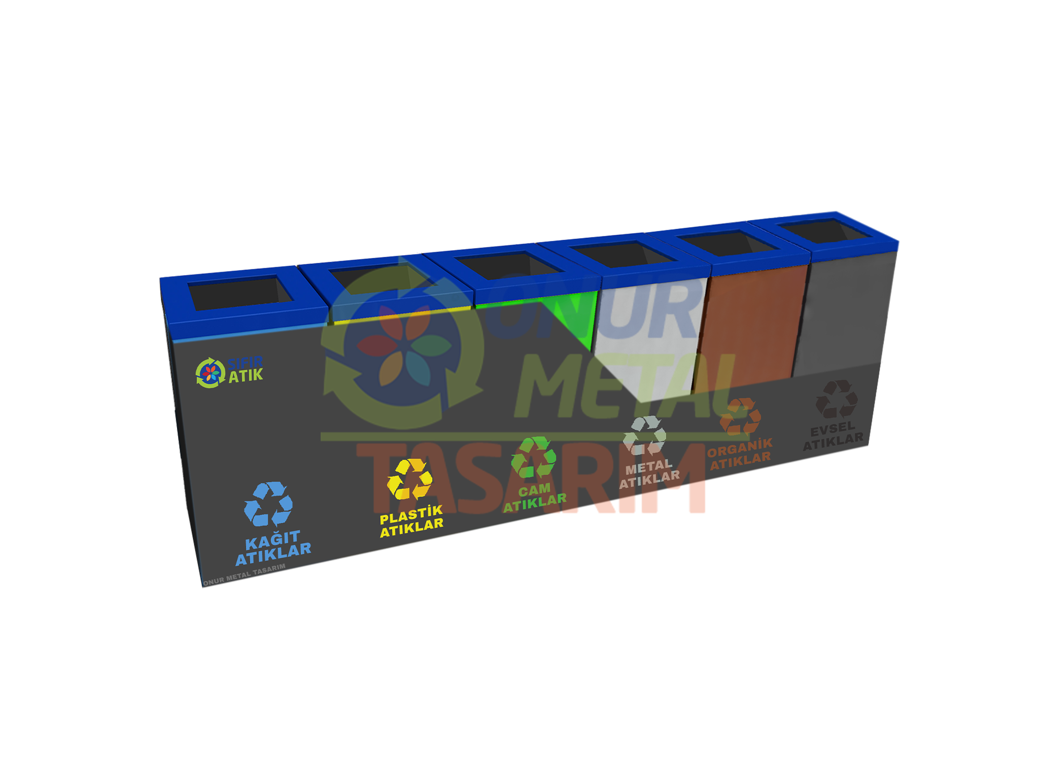OMT-1105 6’lı Metal Zaviyeli Sıfır Atık Çöp Kutusu