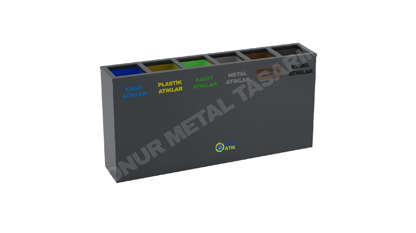 OMT-1105 6’lı Metal Zaviyeli Sıfır Atık Çöp Kutusu