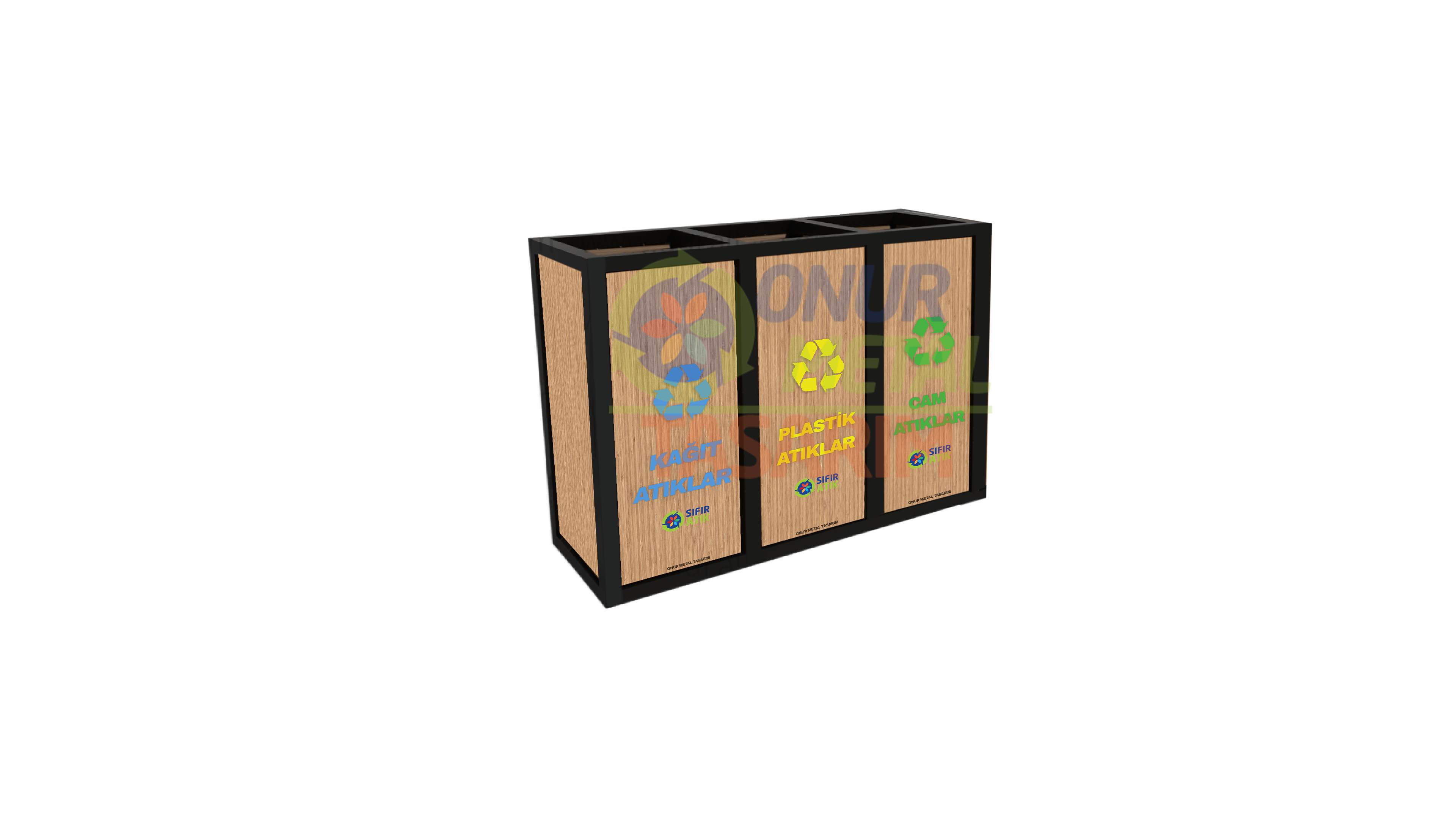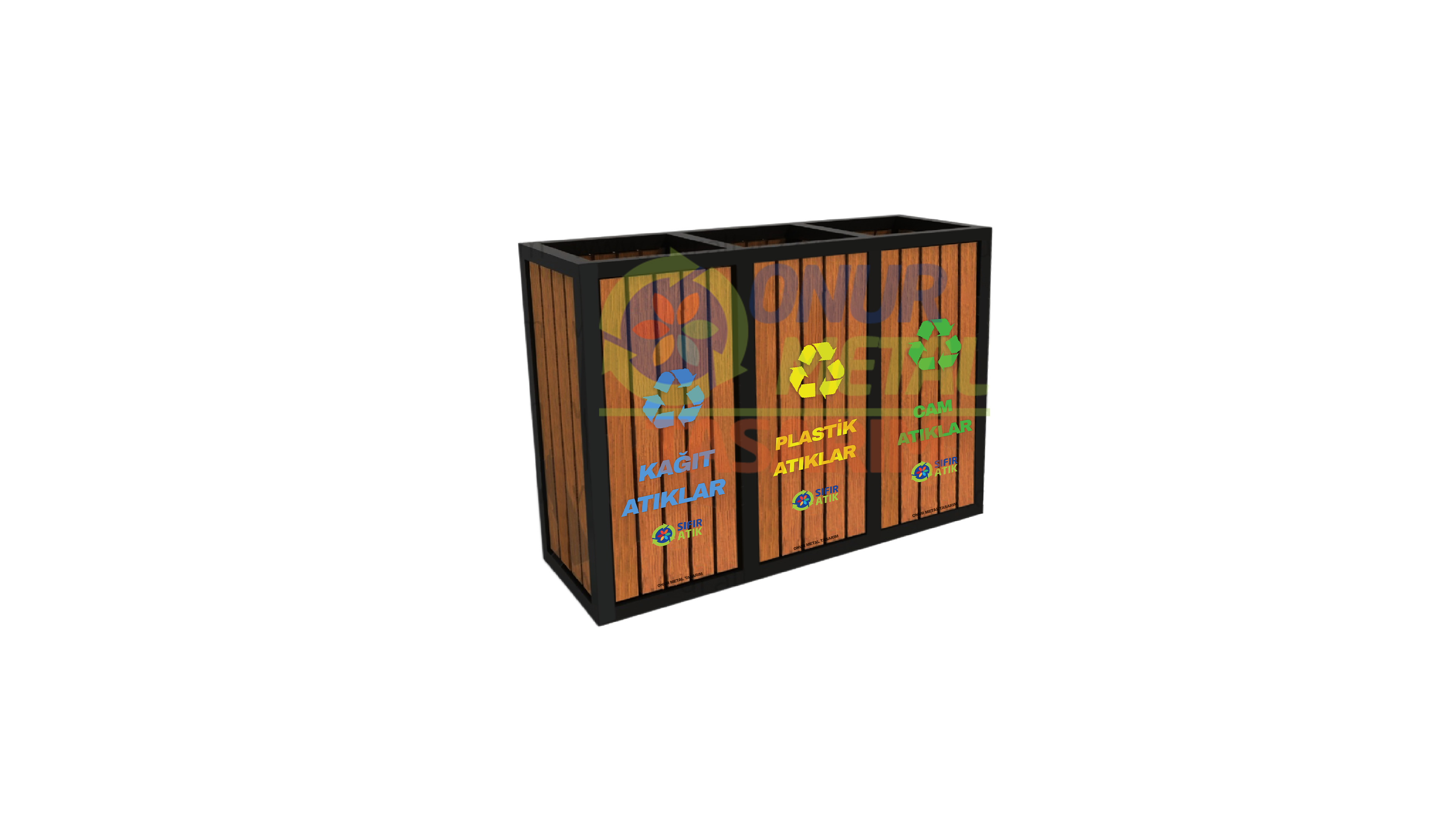 OMT-115 3’lü Ahşap Geri Dönüşüm Çöp Kutusu
