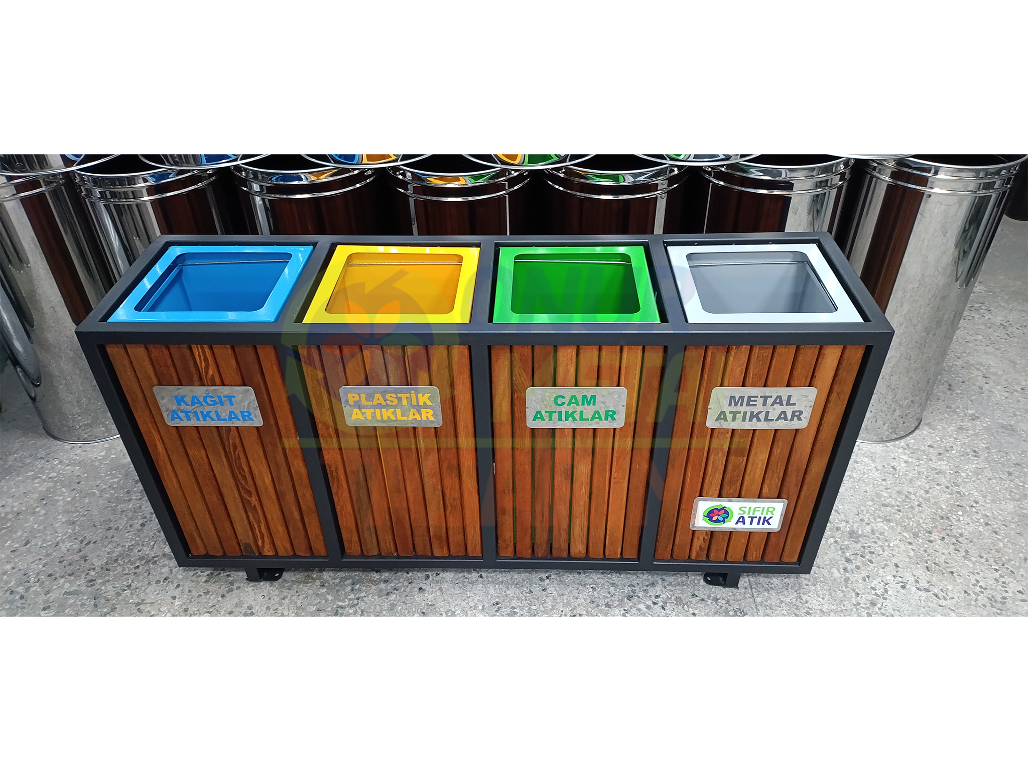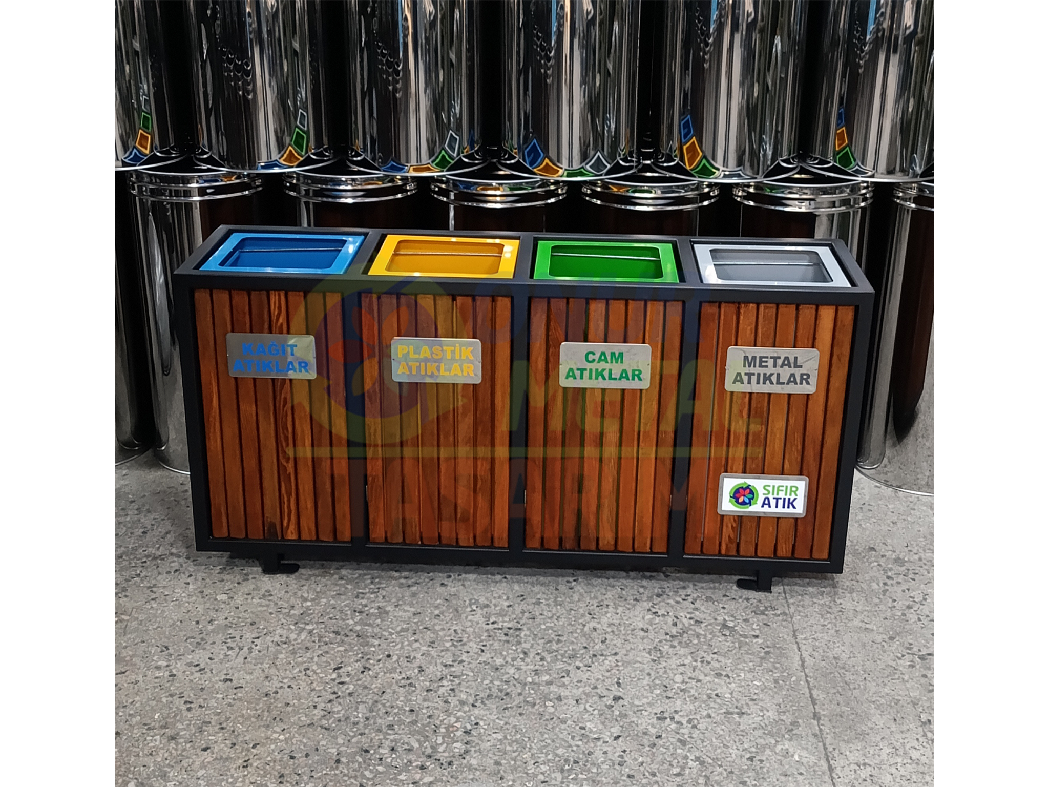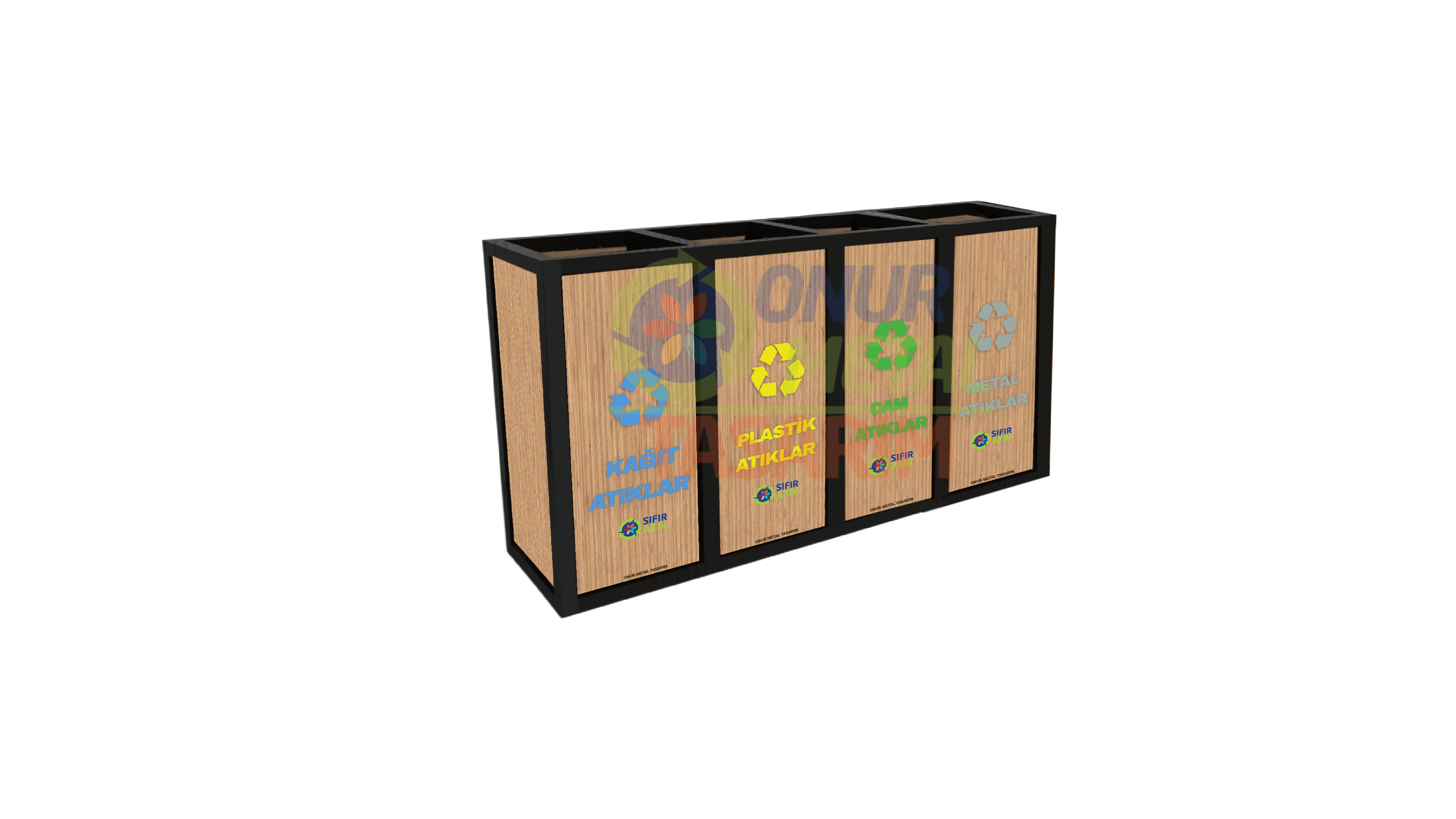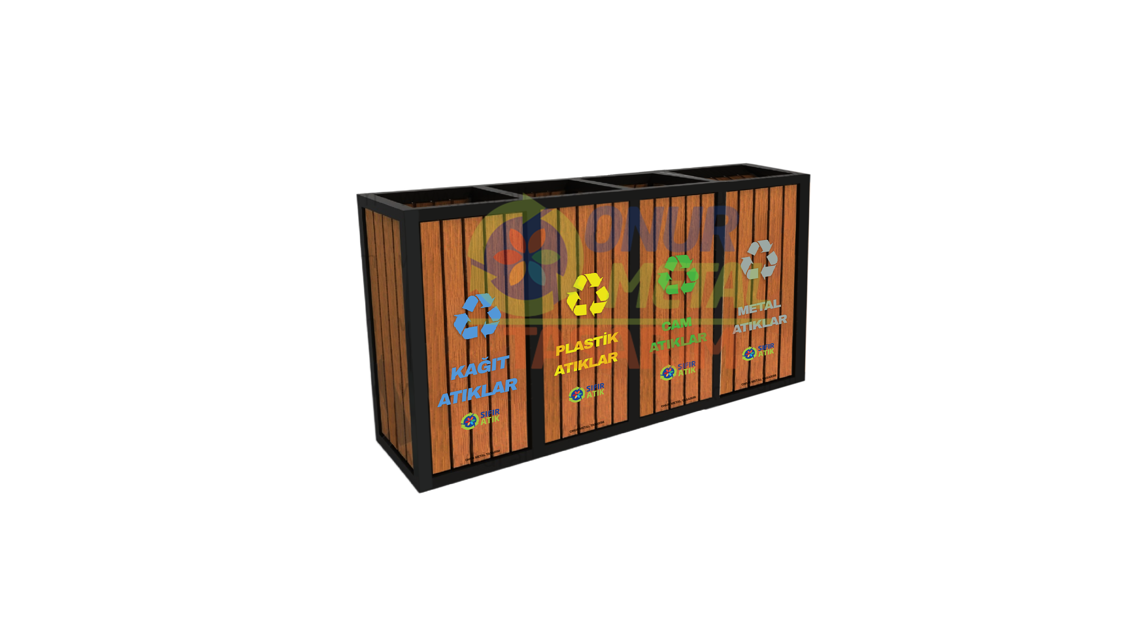 OMT-116 4’lü Ahşap Geri Dönüşüm Çöp Kutusu