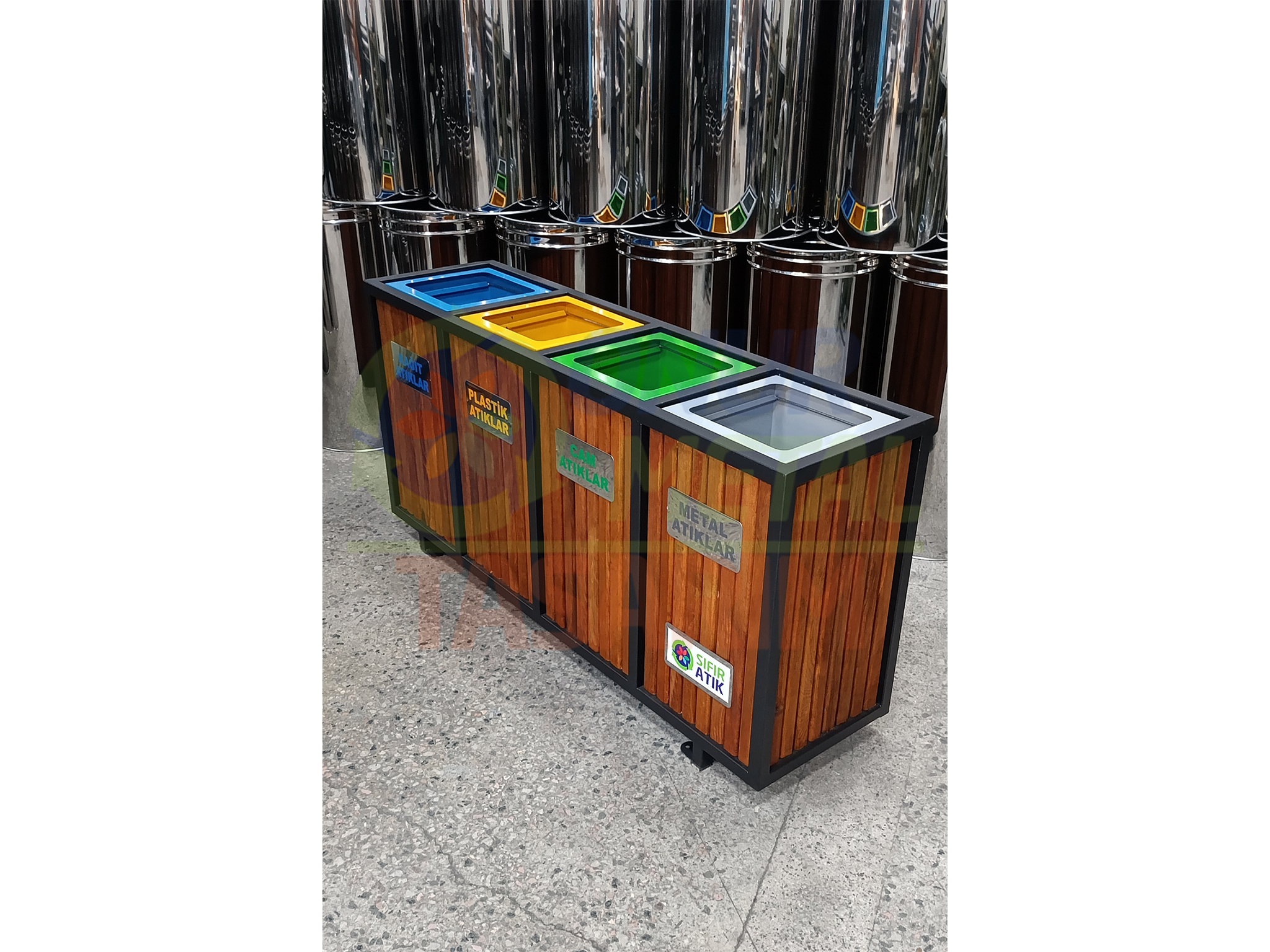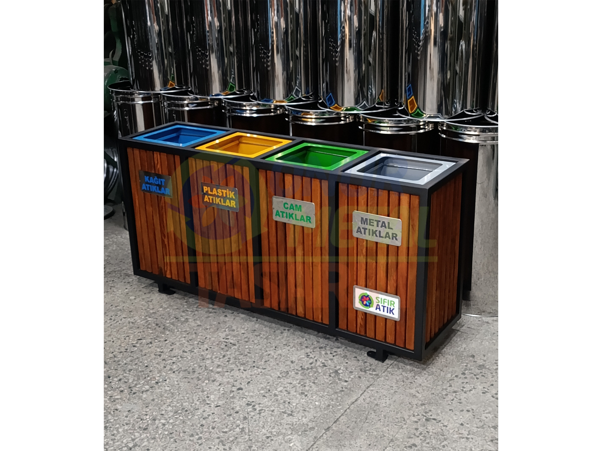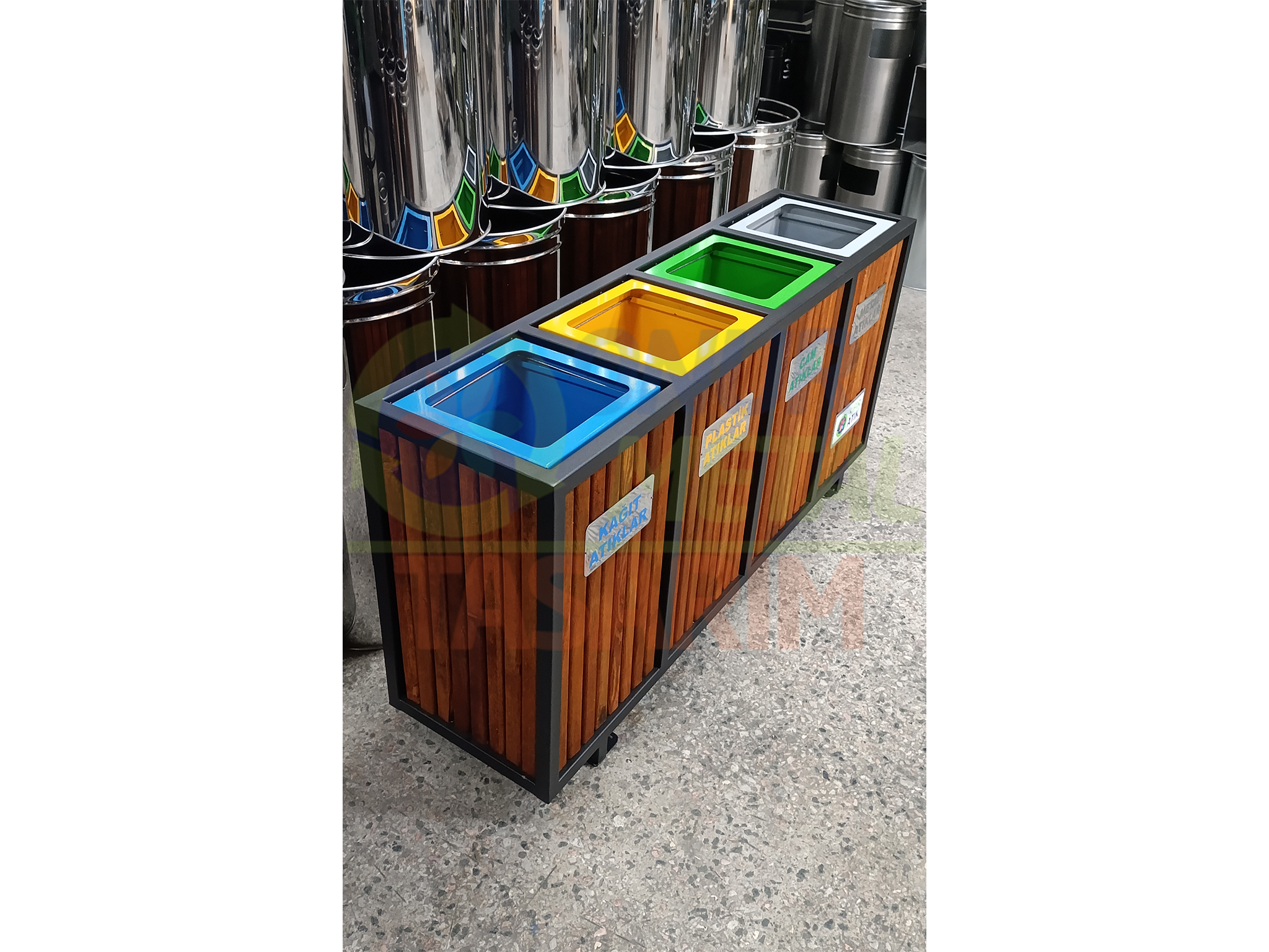 ∴ Çöp Kutusu Ahşap Malzemesi: Fırınlanmış Emprenyeli Ahşap Çıtalı / Suntalam