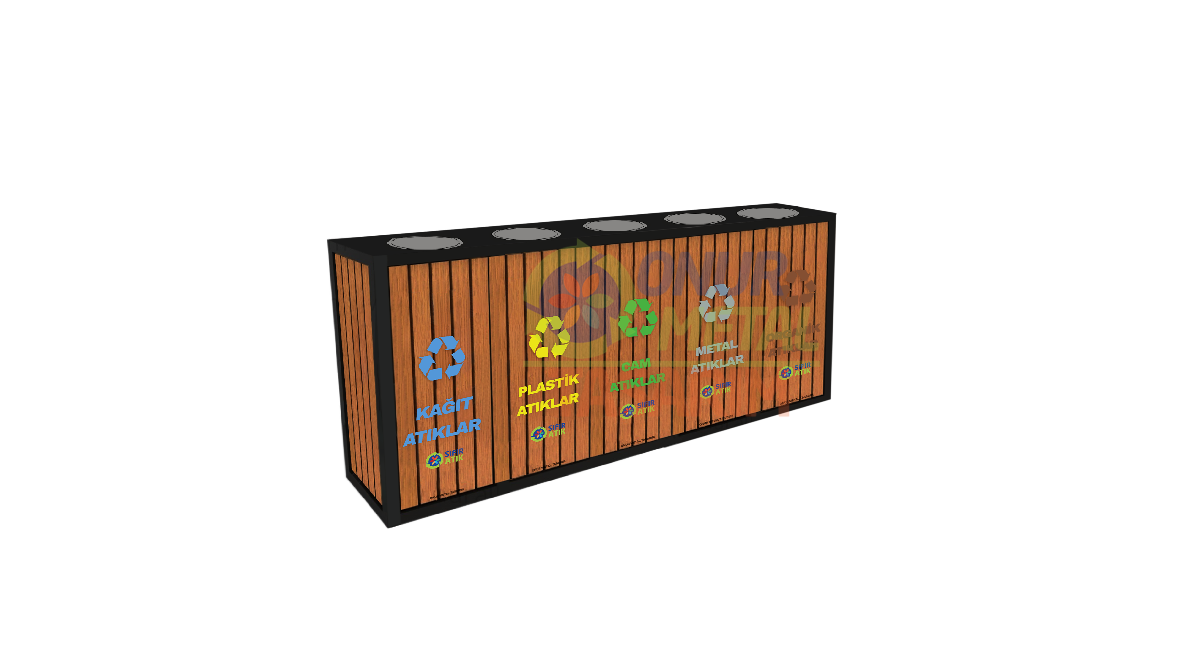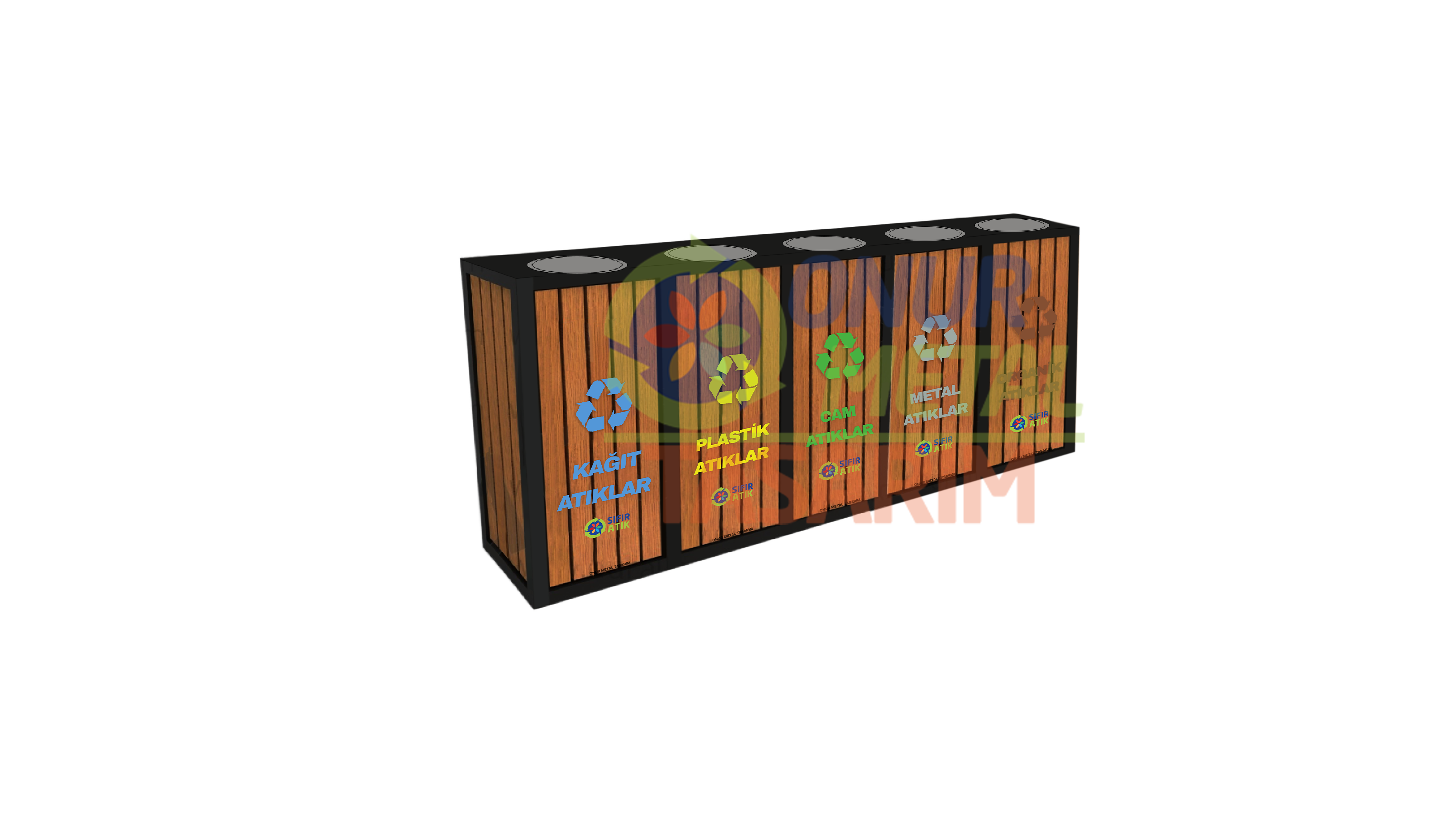 OMT-126 Ahşap Profilli Döner Kapaklı 5’li Geri Dönüşüm Çöp Kutusu