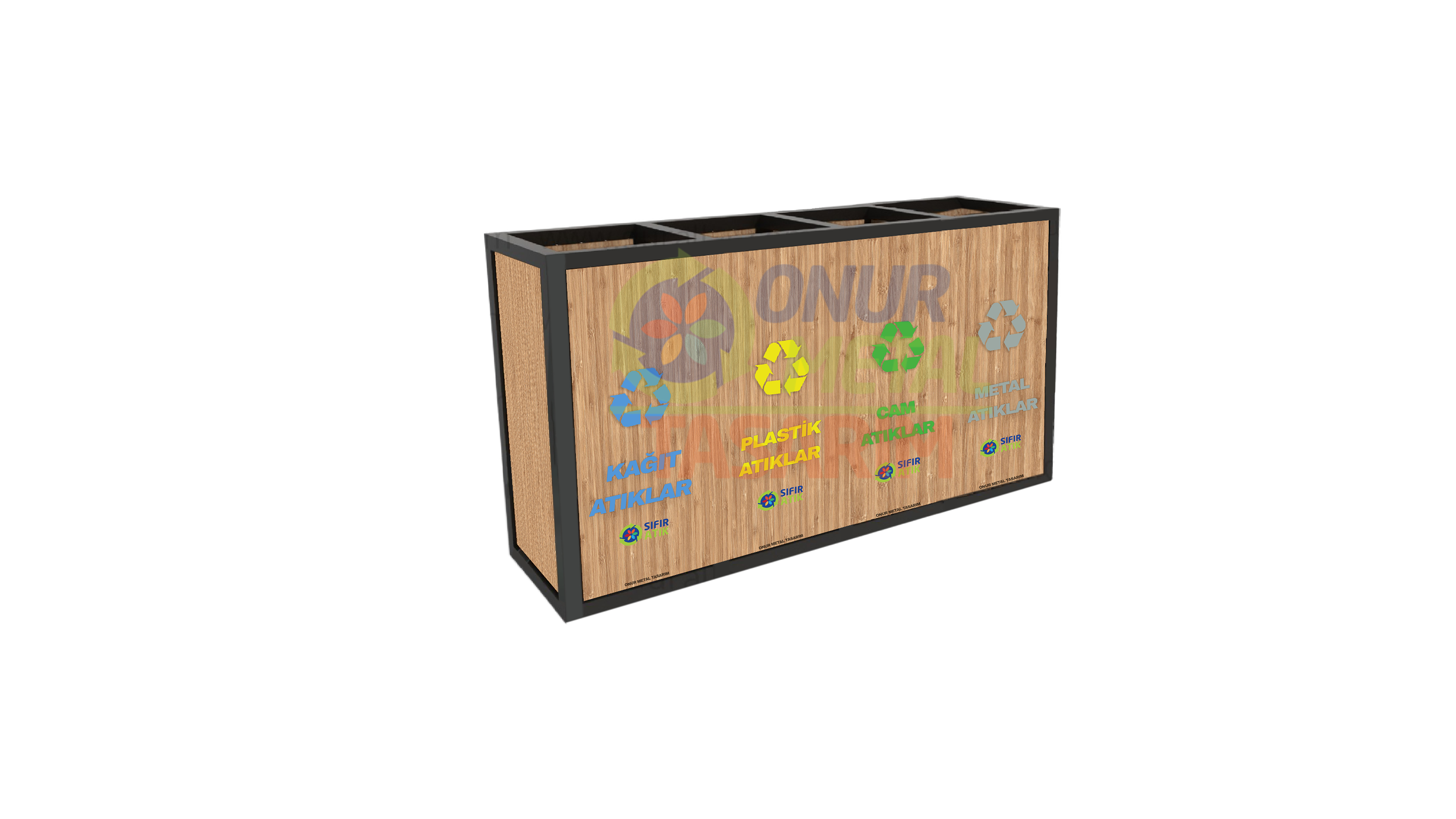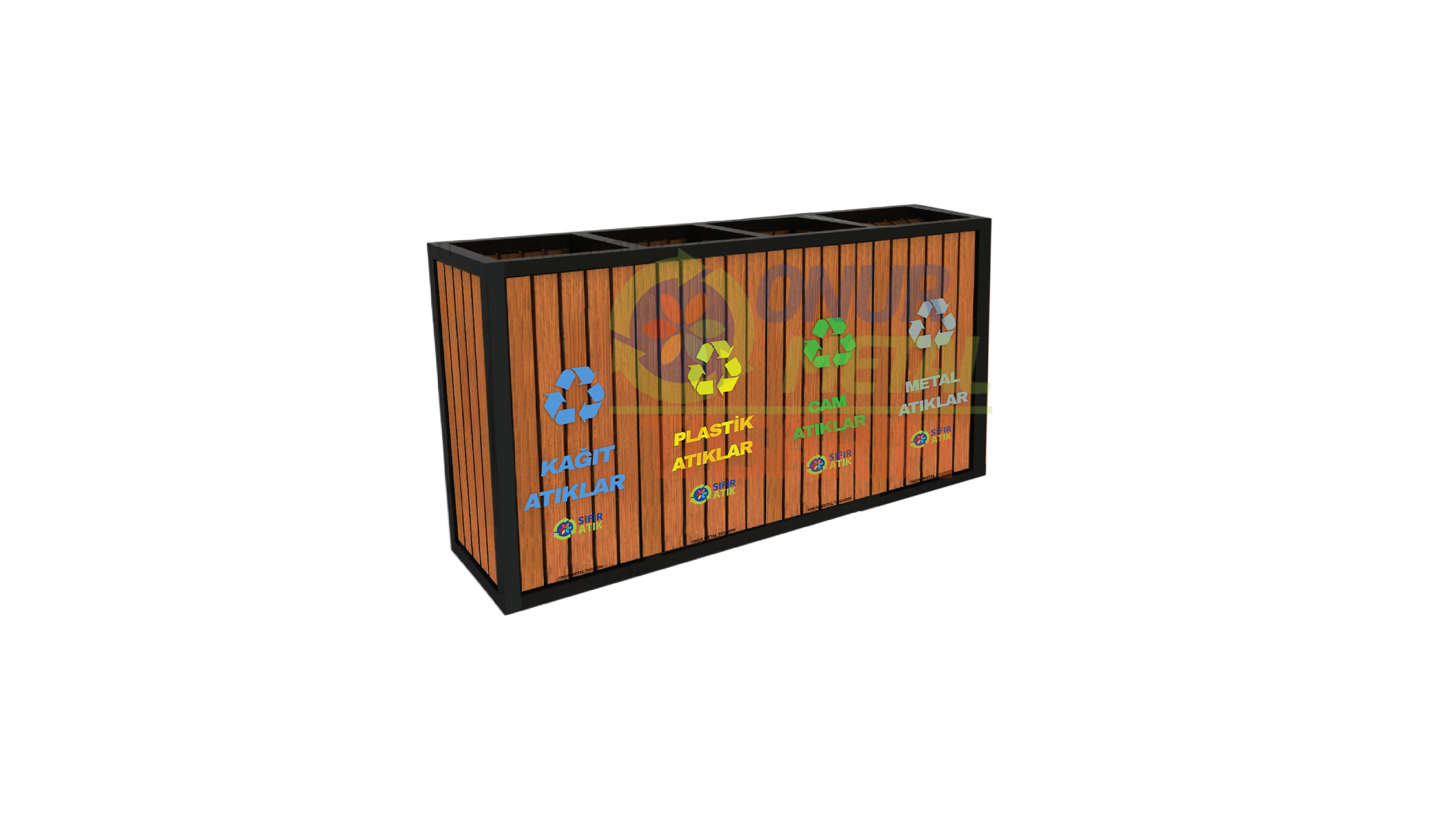 OMT-121 Ahşap-Suntalı 4’lü Geri Dönüşüm Çöp Kutusu